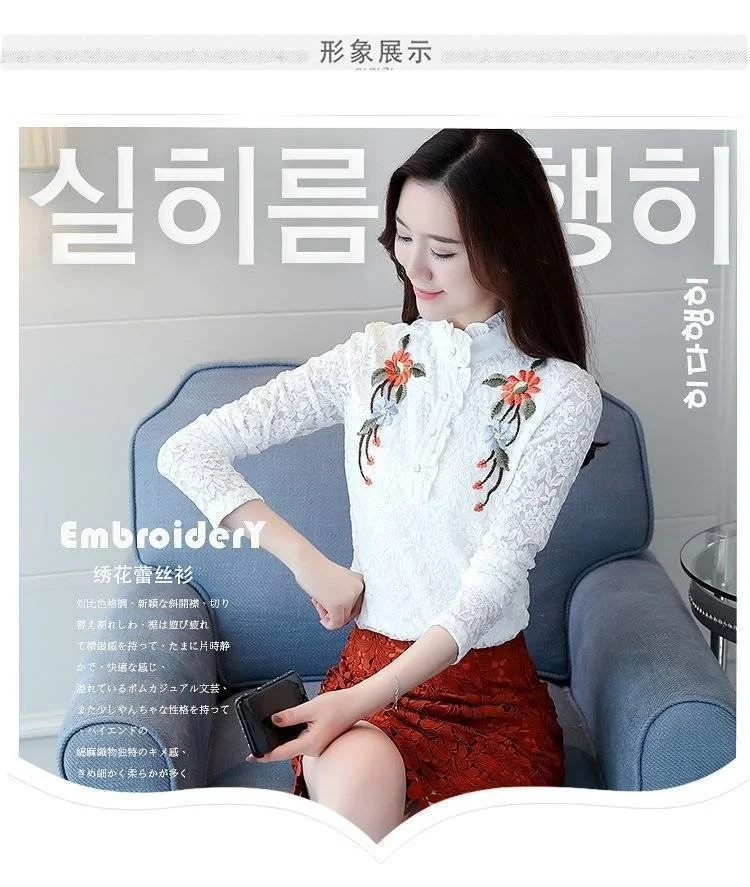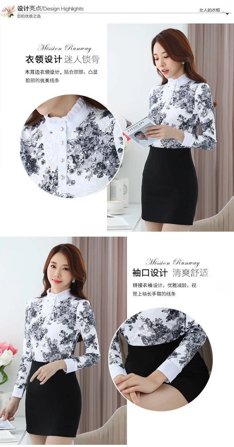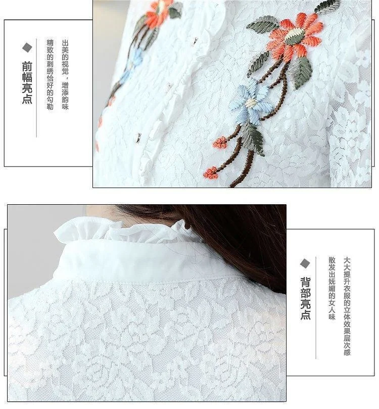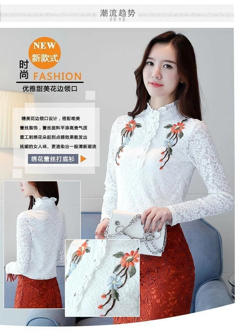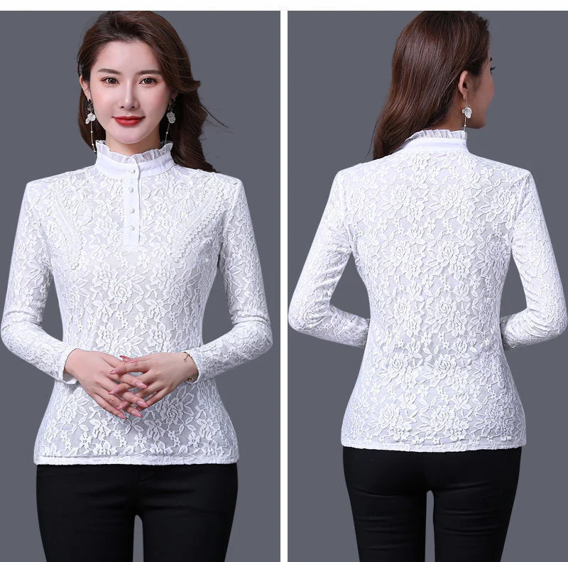 Женская весенне-осенняя стильная тонкая кружевная женские блузки ру...