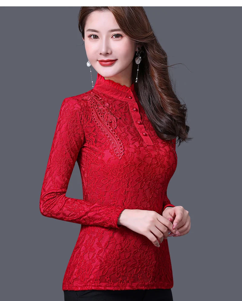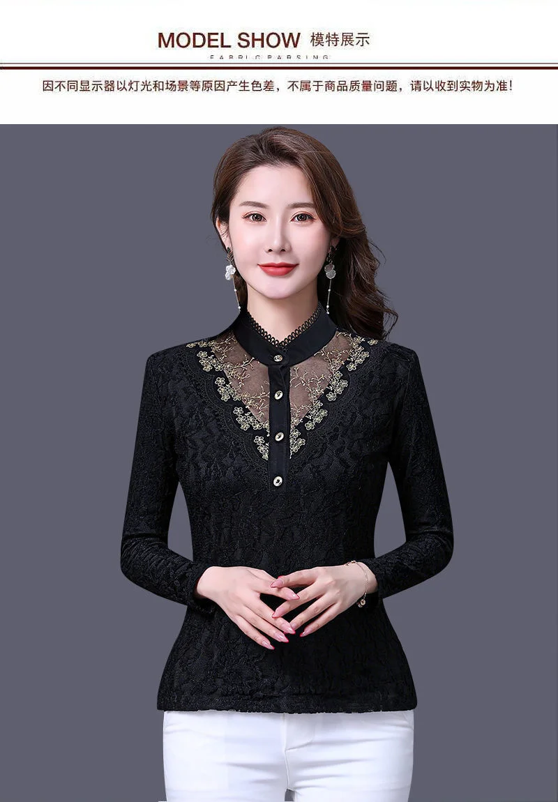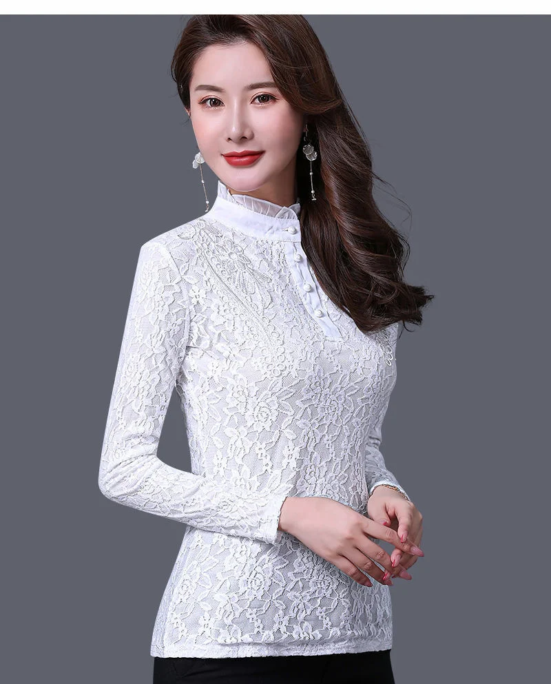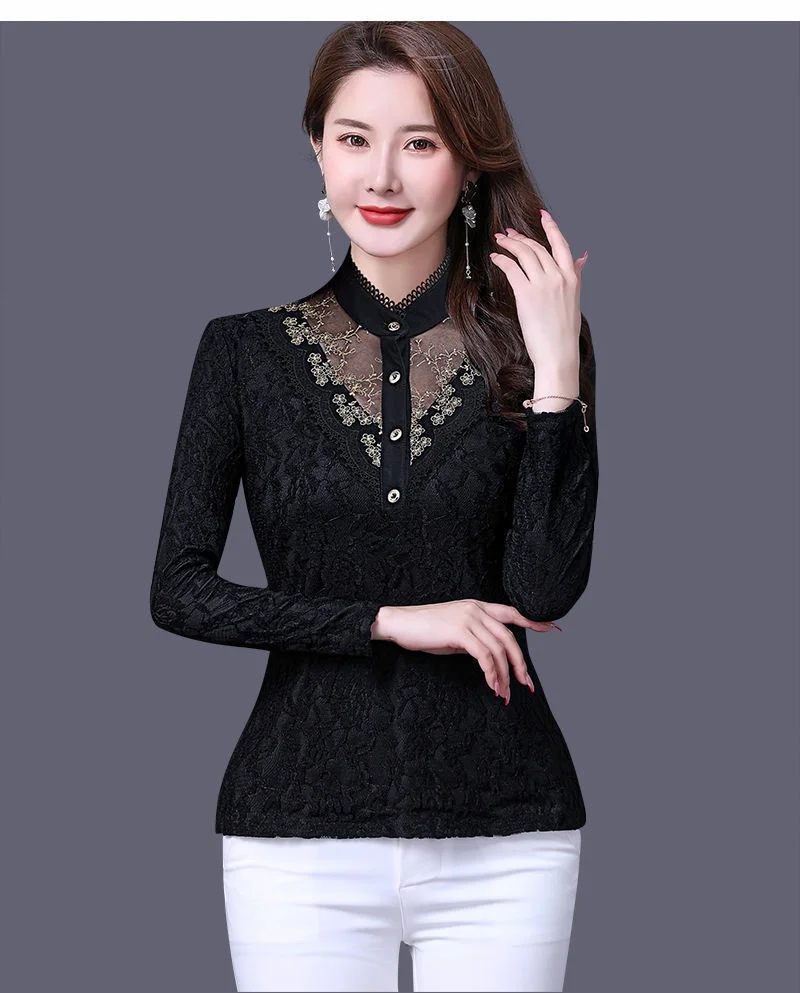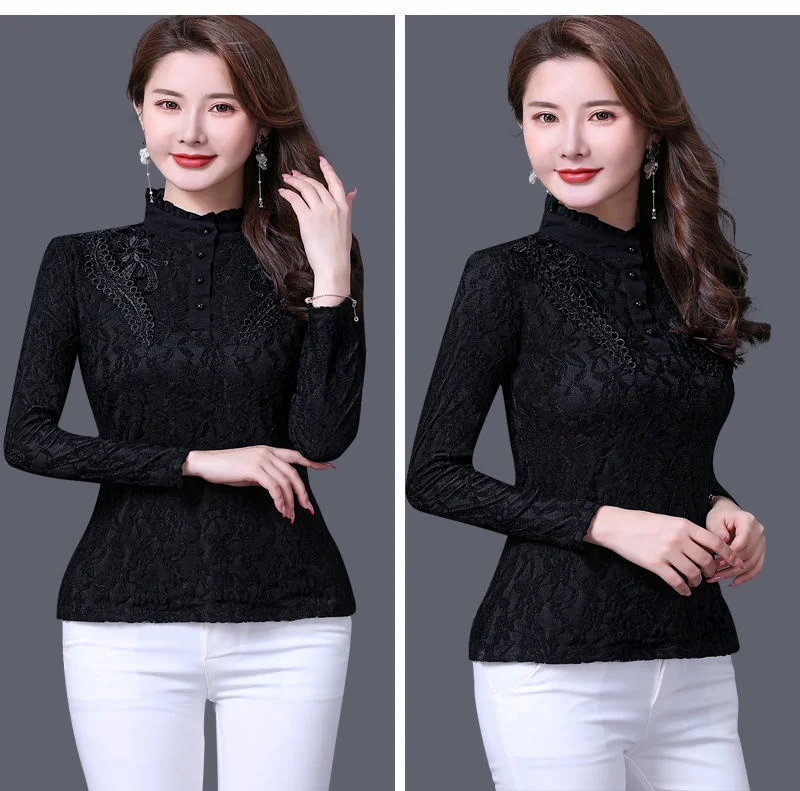Женская весенне-осенняя стильная тонкая кружевная женские блузки ру...