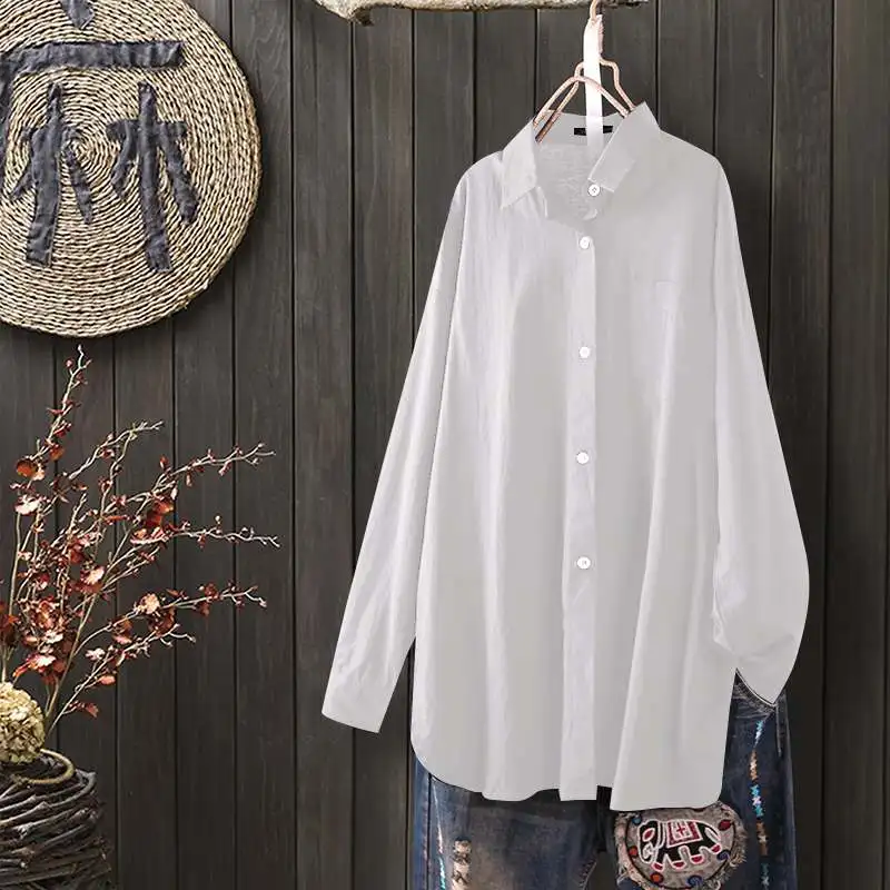 Блузка ZANZEA женская оверсайз с лацканами, Офисная рубашка с длинн...
