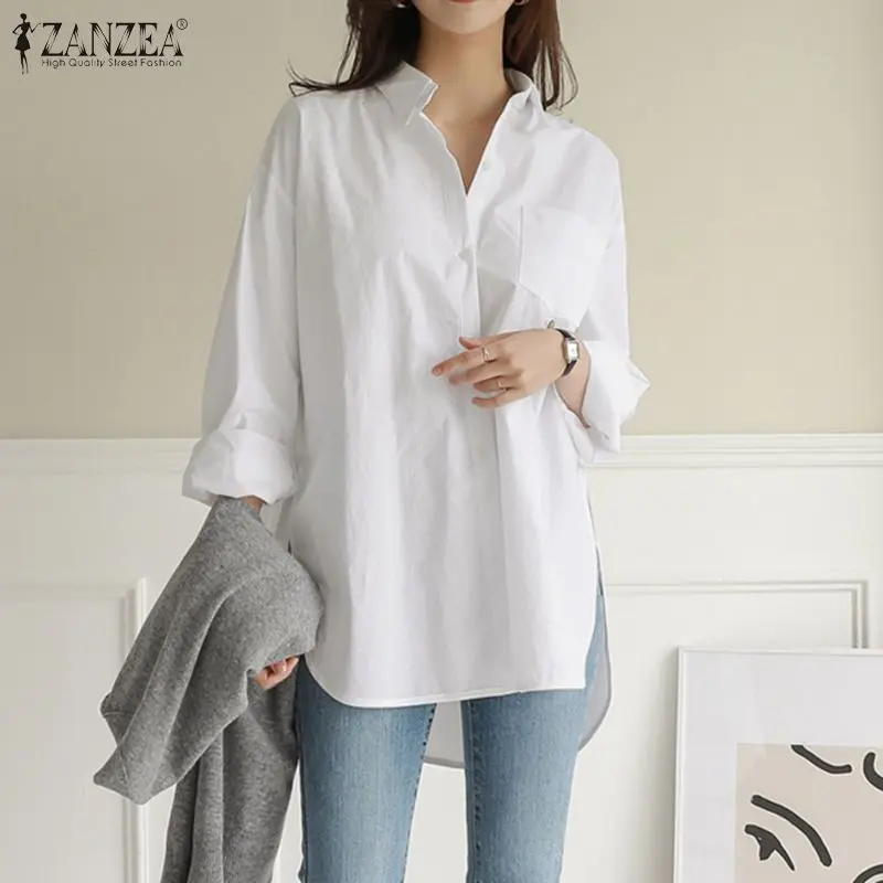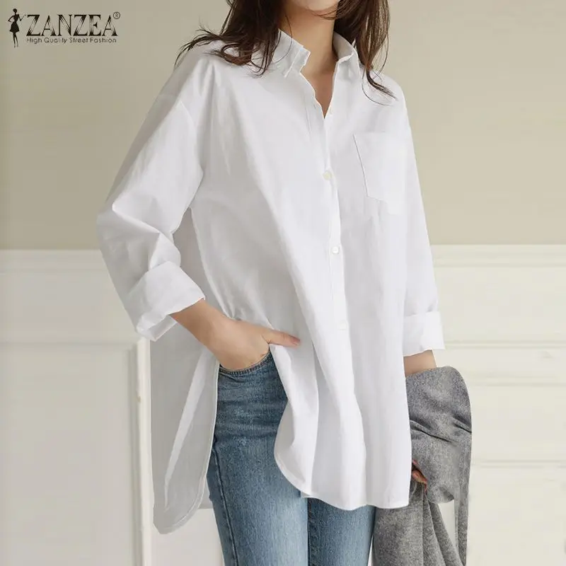 Женская Асимметричная блузка ZANZEA 2021, винтажные весенние рубашк...