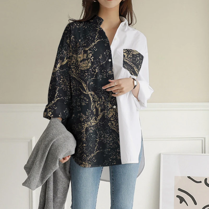 Осенняя рубашка ZANZEA 2022 с принтом, Женские винтажные нестандарт...