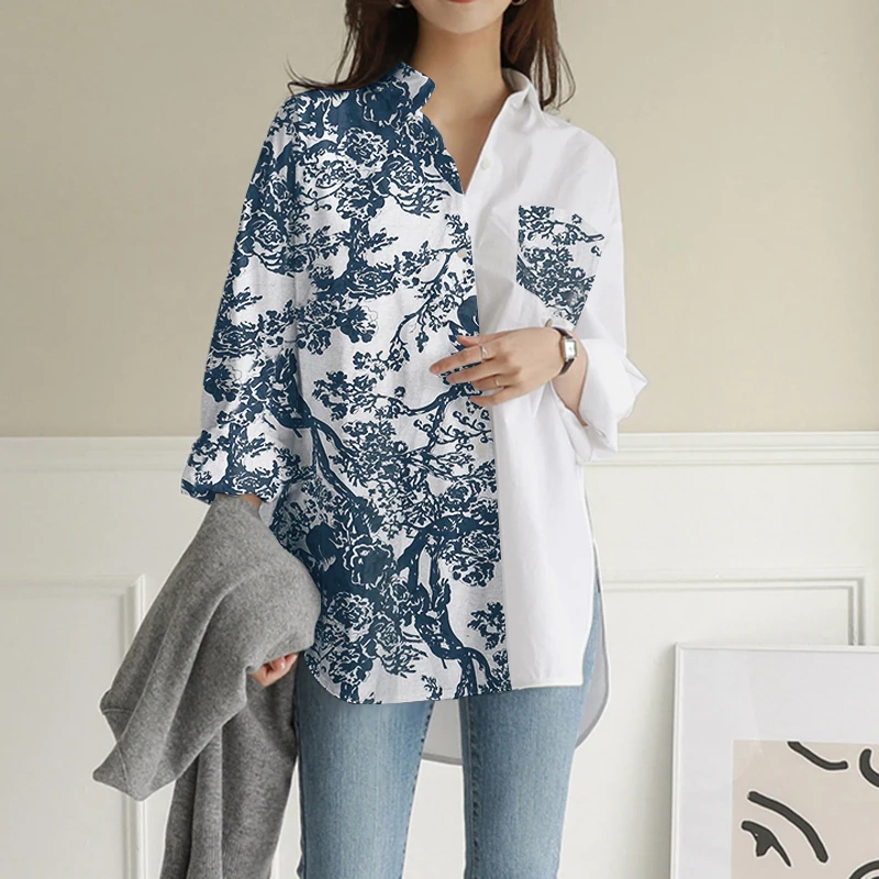 Рубашки для женщин 2021 женская блузка с принтом ZANZEA весенние то...