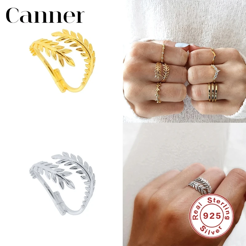 Женские кольца на палец Canner из стерлингового серебра 925 пробы с цепочкой в виде листа змеи, очаровательные обручальные кольца, ювелирные украшения Bague anillo W5