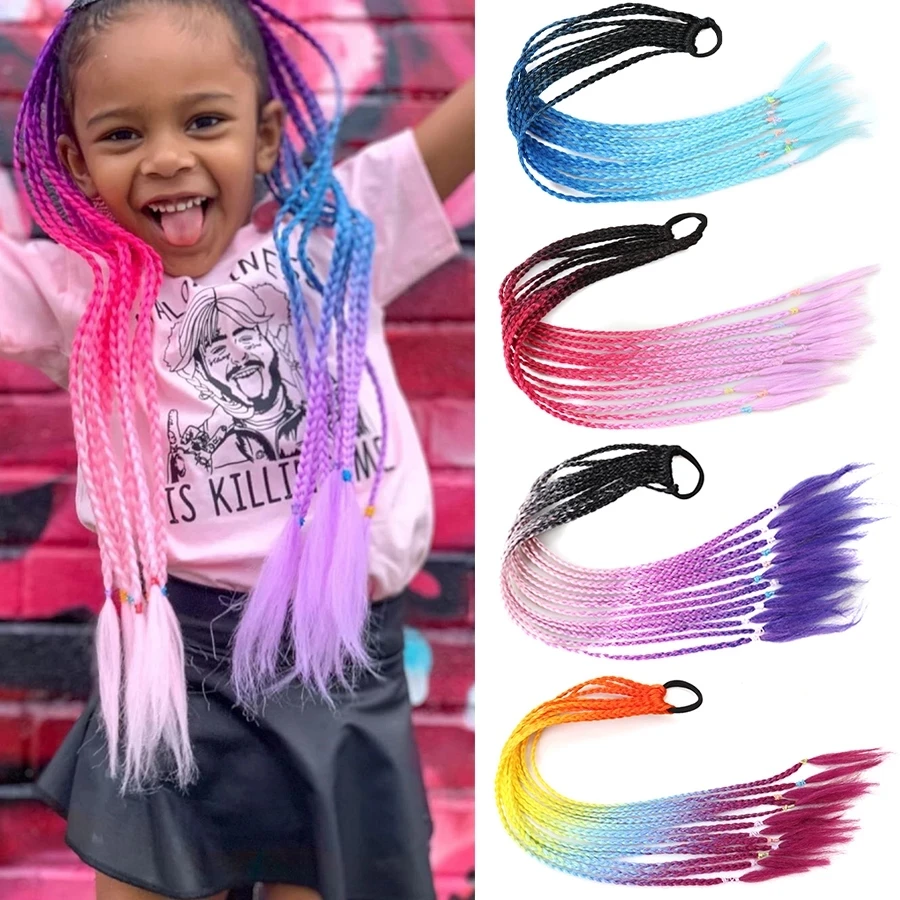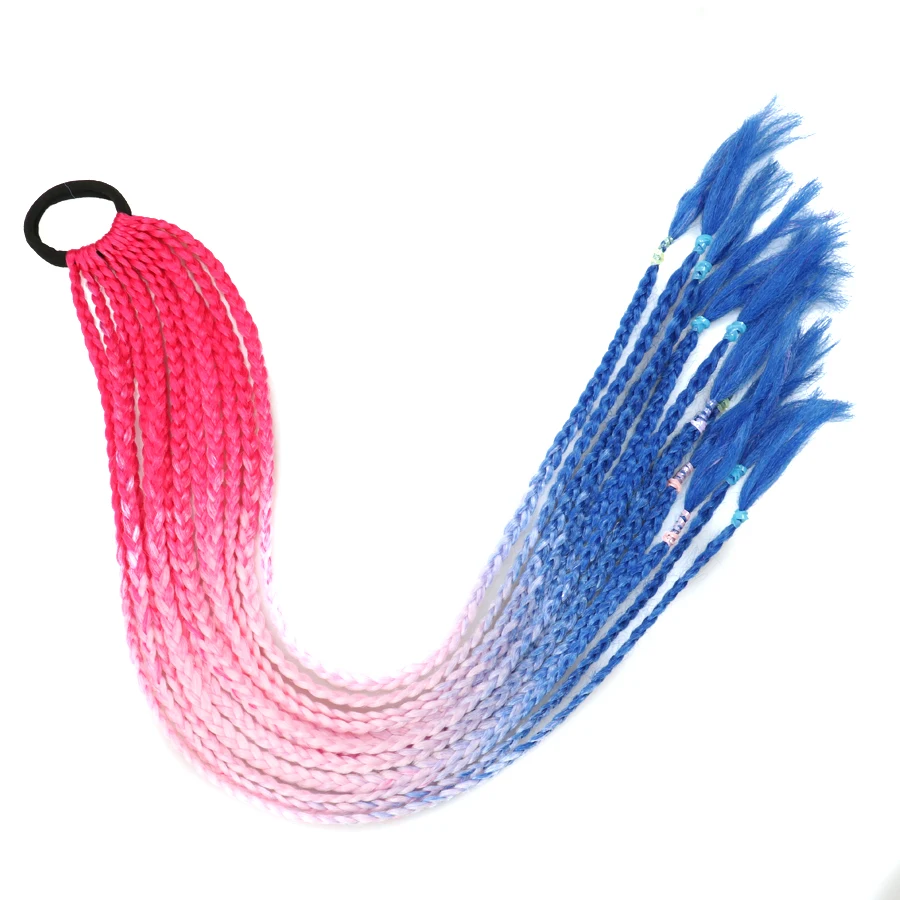 Накладной хвост, синтетический цветной Радужный конский хвост с эффектом омбре, эластичная резинка для волос накладных волос, косичка для женщин и девочек