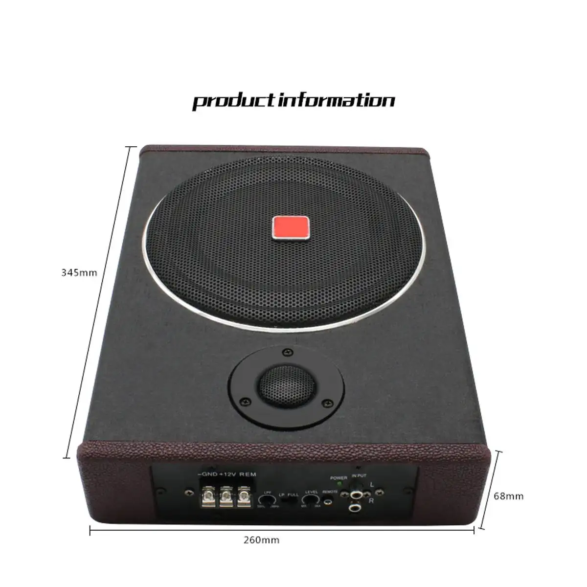 Особенности1. 8 "супер тонкий активный сабвуфер с усилителем2. Оснащен входами уровня RCA/динамика, может быть легко интегрирован с использованием существующих соединений динамиков3. Множество излучающих отверстий расположены с обеих сторон, чтобы обеспечить рассеивание тепла и избежать горения звукового ящика.4. Деревянный корпус, чтобы минимизировать вибрацию, вызванную шумом, чтобы гарантировать, что в течение длительного времени, высокая нагрузка в окружающей среде стабильной и надежной.