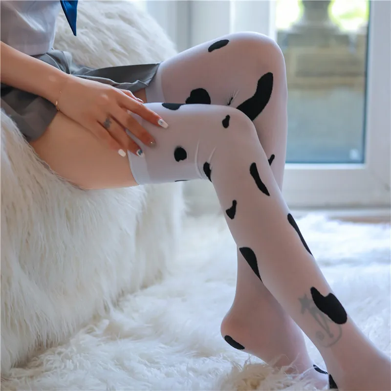 Женские чулки для косплея Kawaii из коровьей кожи с принтом, чулки до бедра, милые молочные колготки, женские колготки