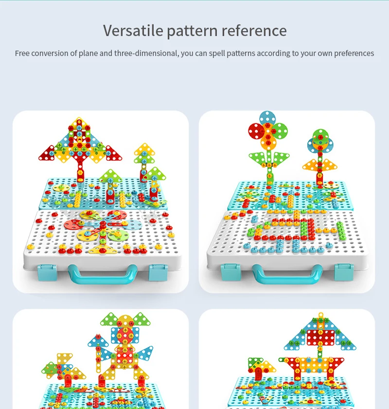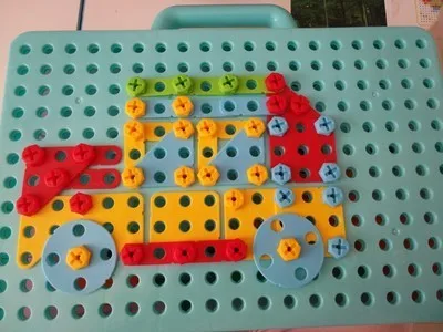 Креативные мозаичные пазлы, игровой набор игрушек, винтовые гайки, инструменты, строительные игрушки для детей Описание: Изготовлен из зеленого экологического материала, не вредит вашим детям Дети могут сверлить красочные винты в доску, чтобы сделать тонны крутых дизайнов Дрель использует 2 батарейки АА (не входят в комплект) Pegboard Размер: 24*30*6 см для возраста 3-6 лет