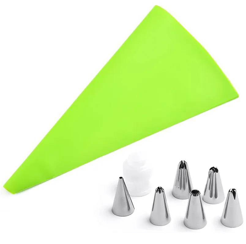 8 шт.лот, силиконовые кухонные аксессуары, кондитерский мешок для глазирования, крема, 6 насадок из нержавеющей стали, сделай сам, трубка для украшения тортов
