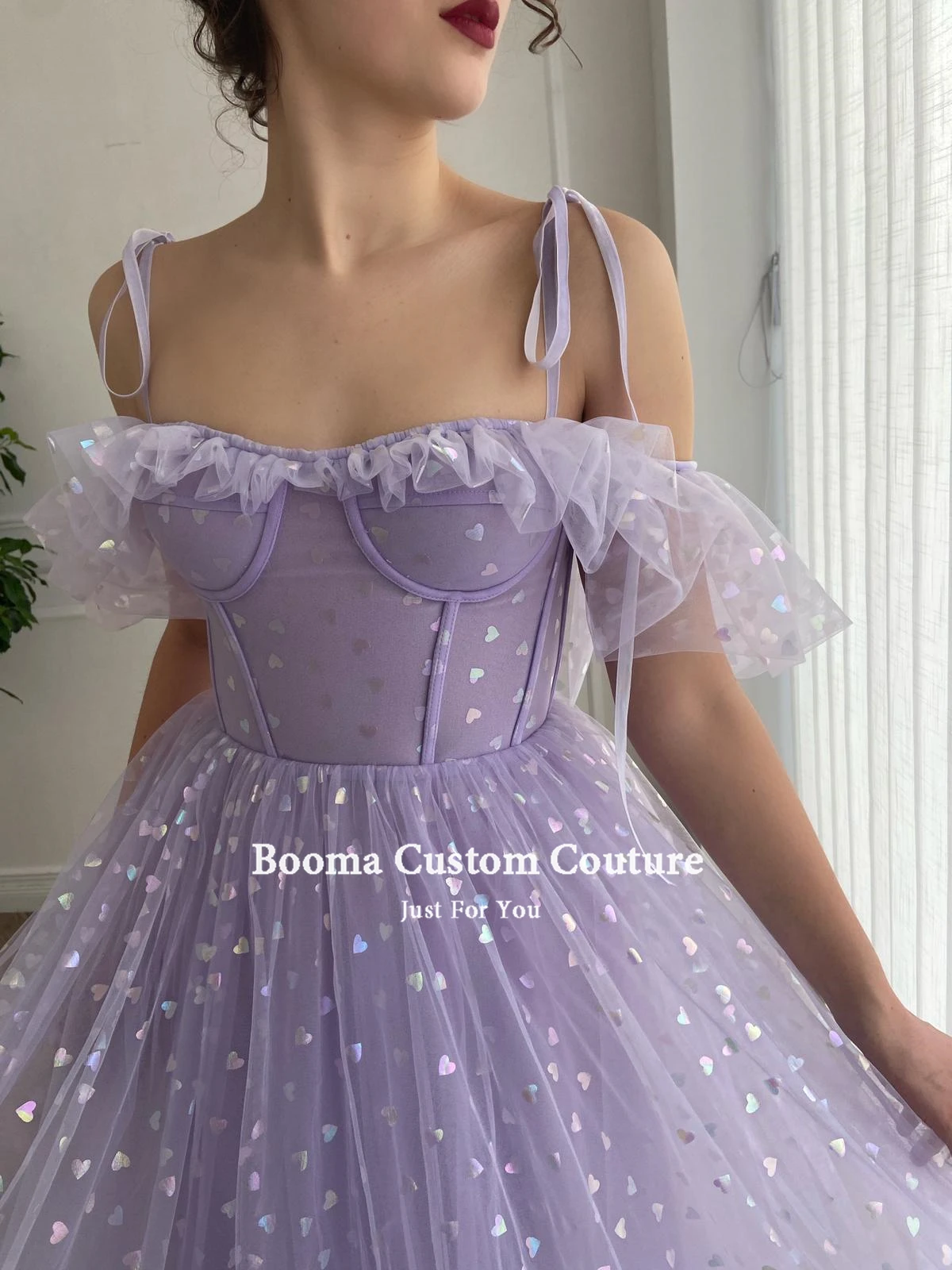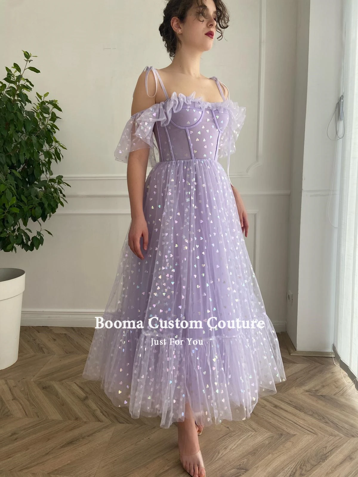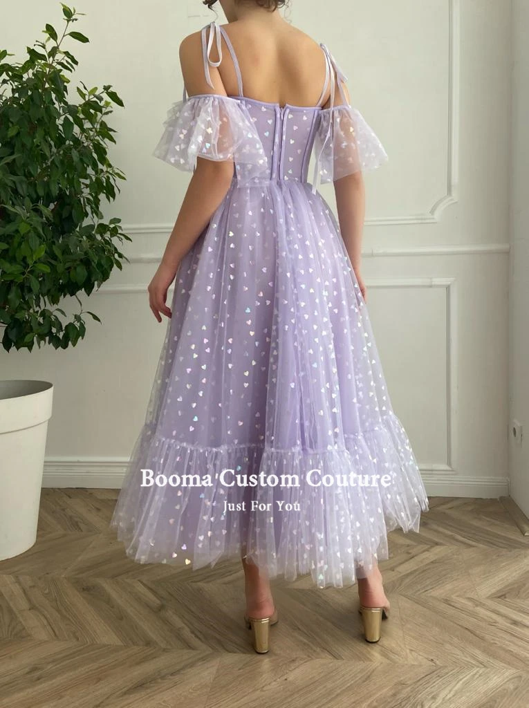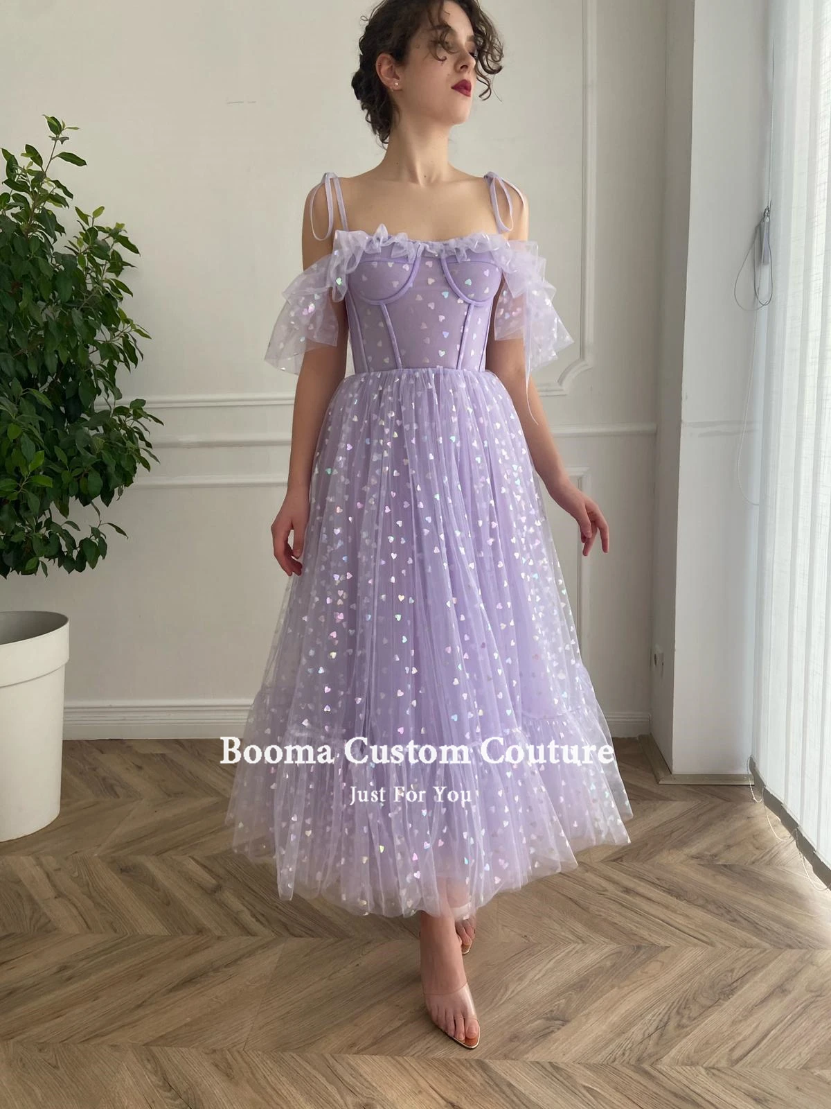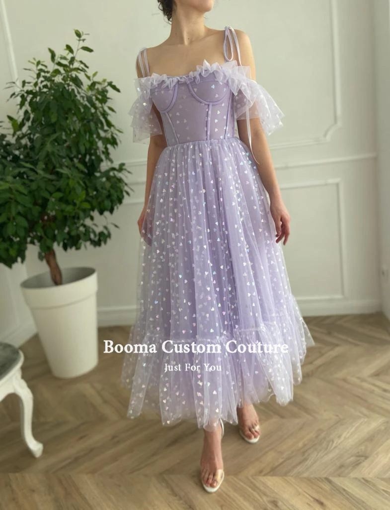 Женское платье средней длины Booma, Сиреневое платье на тонких бретелях, с оборками, с открытой спиной, для выпускного вечера, свадебные платья длиной до колена, 2021