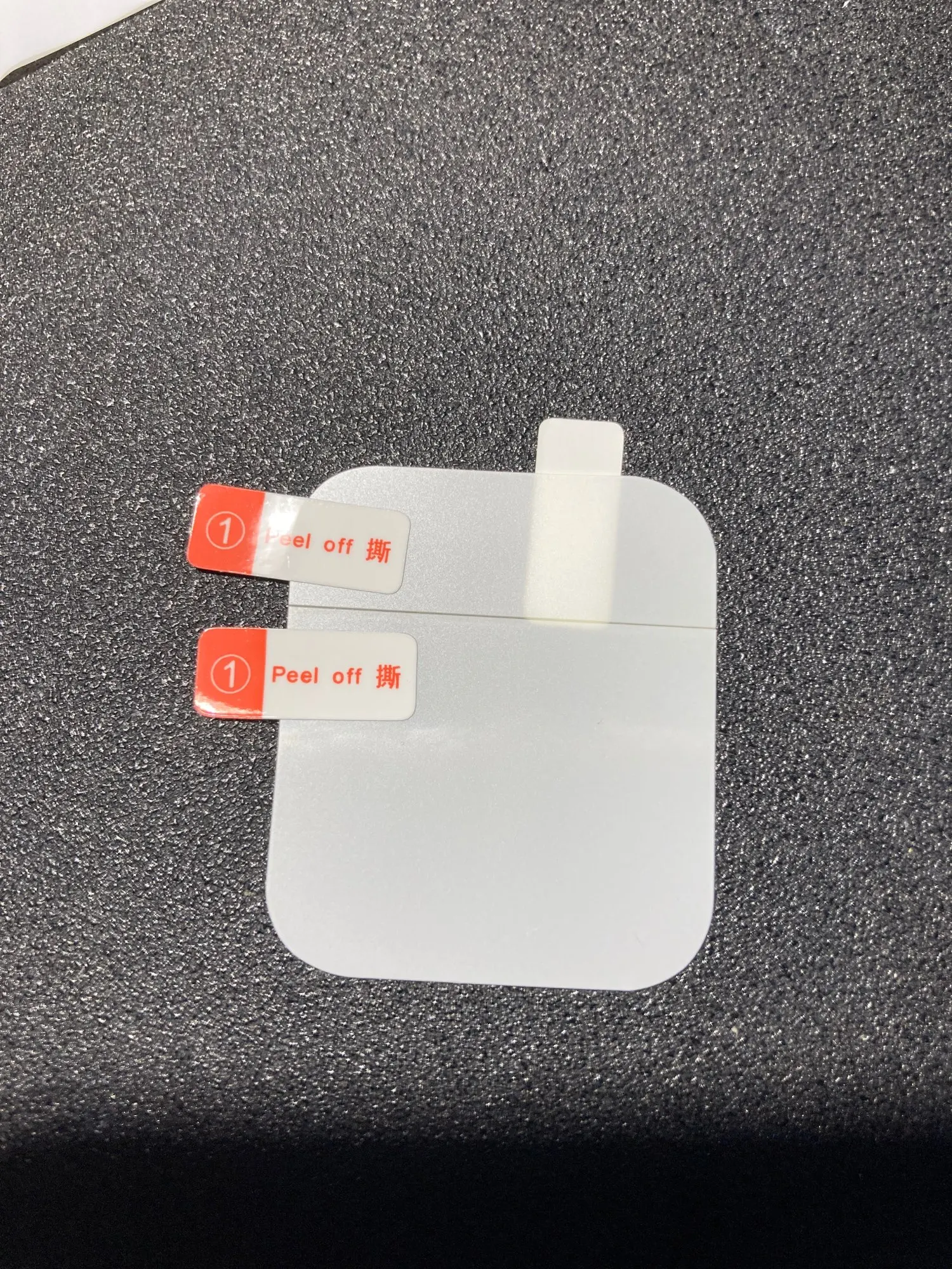 El producto parece ser de materia hidrogel, muy bueno ya que Apple Watch es una pantalla curva. No me gustó que venia separado en 2 peel off y se marca una linea en el medio del reloj, pero es solo un detalle ya que para el precio esta bien... llegó súper rápido tardó 2 semanas a Chile, e incluía todo para aplicar el producto