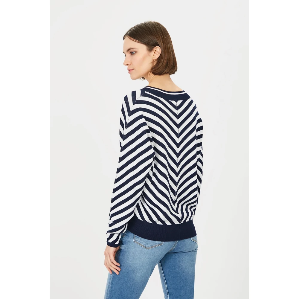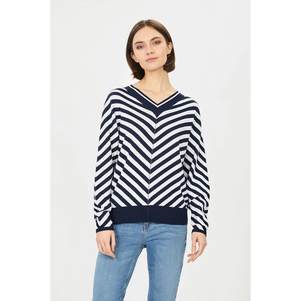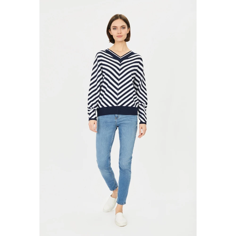 Производитель: Россия. Коллекция: ВЕСНА-ЛЕТО 2021. ~ Вещи с морской полоской - элегантное решение на каждый день. Сине-белый узор давно стал модной классикой, которая вдохновляет на создание лаконичных образов с отпускным настроением. Особенно эффектно этот пуловер будет смотреться в сочетании со схожими по стилю вещами белых, синих и красных оттенков.