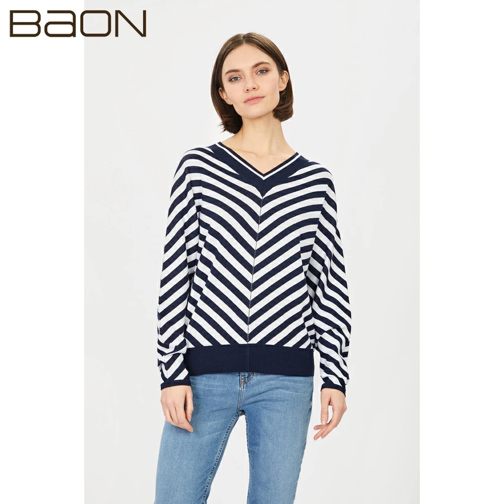 Женская футболка в морскую полоску с V-вырезом Baon B239205