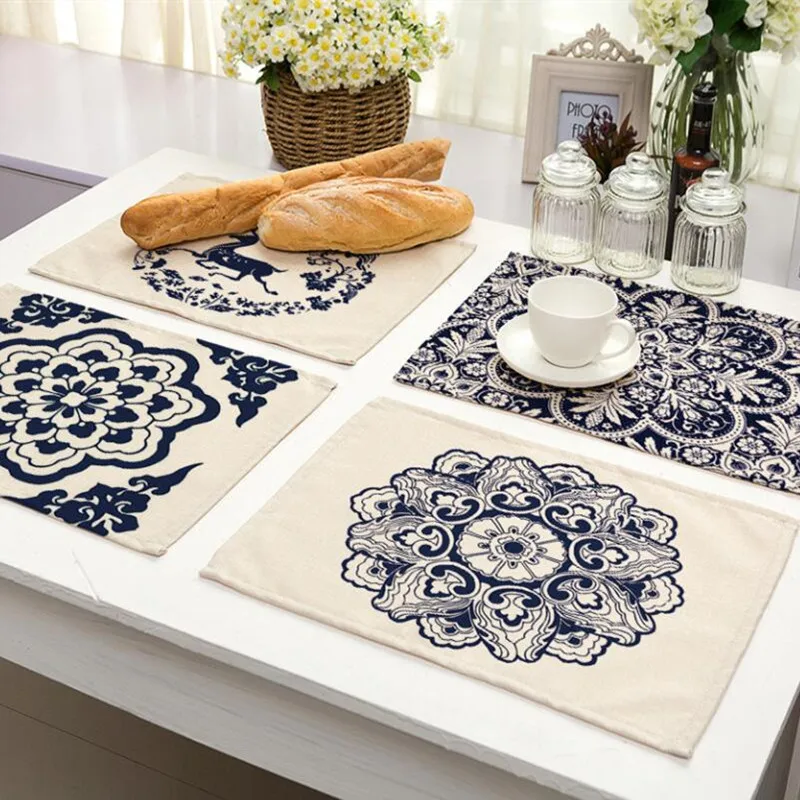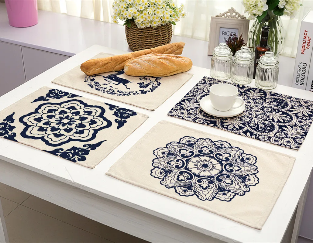 Изолированная кухонная подставка в китайском стиле с изображением синего и белого фарфора и цветов, коврик для обеденного стола, подставки, коврики для чашек, домашний декор