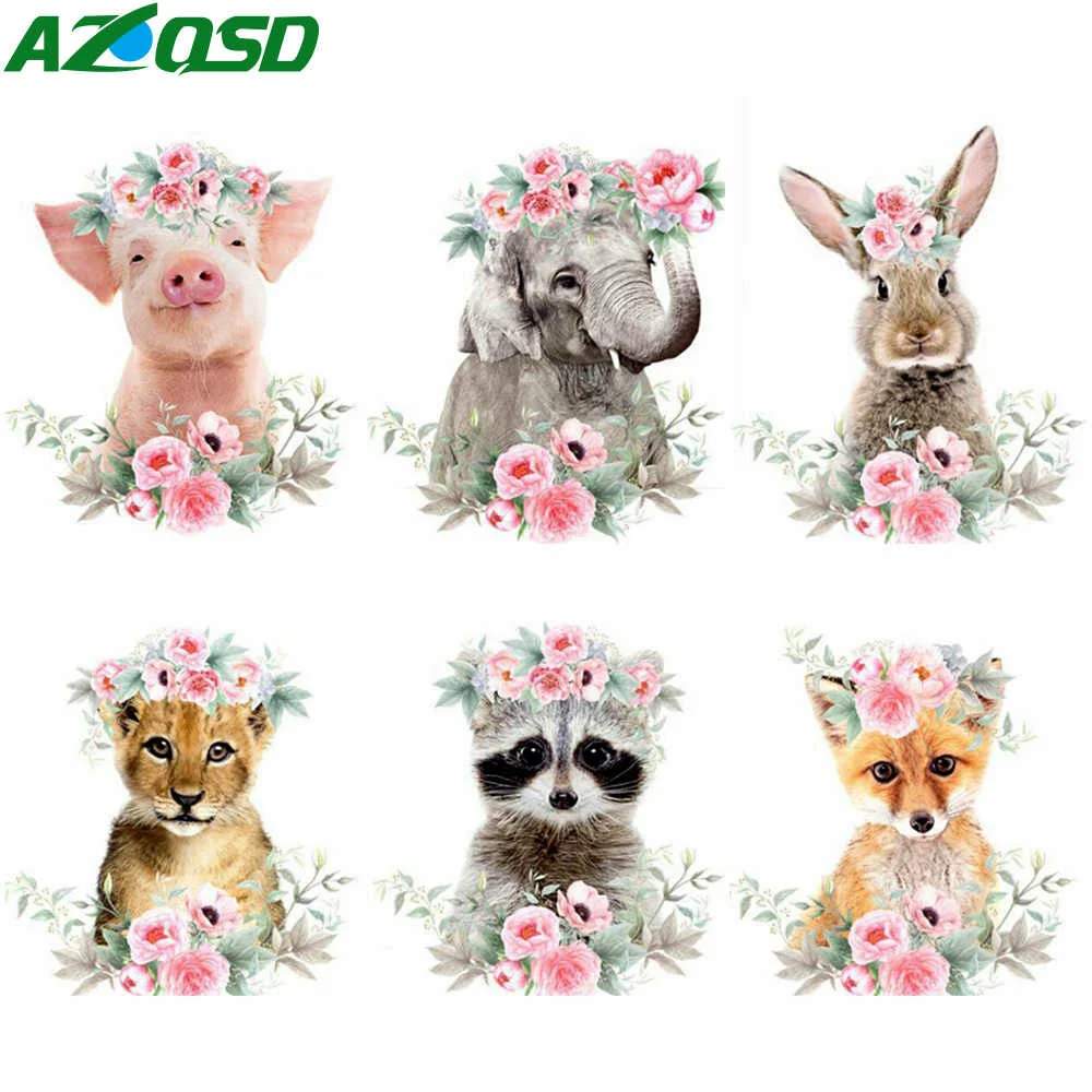 AZQSD масла Краски ing по номерам животных Акриловые Краски дома Гостиная искусство ремесла Сделай Сам Раскраска по номерам слон ручной Краски ed подарок