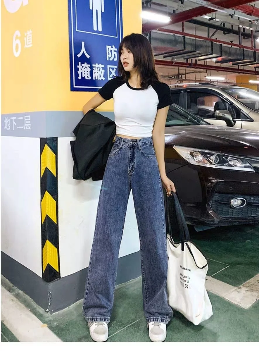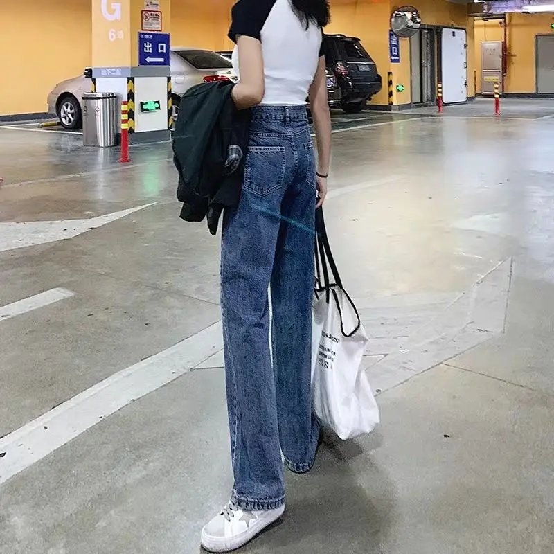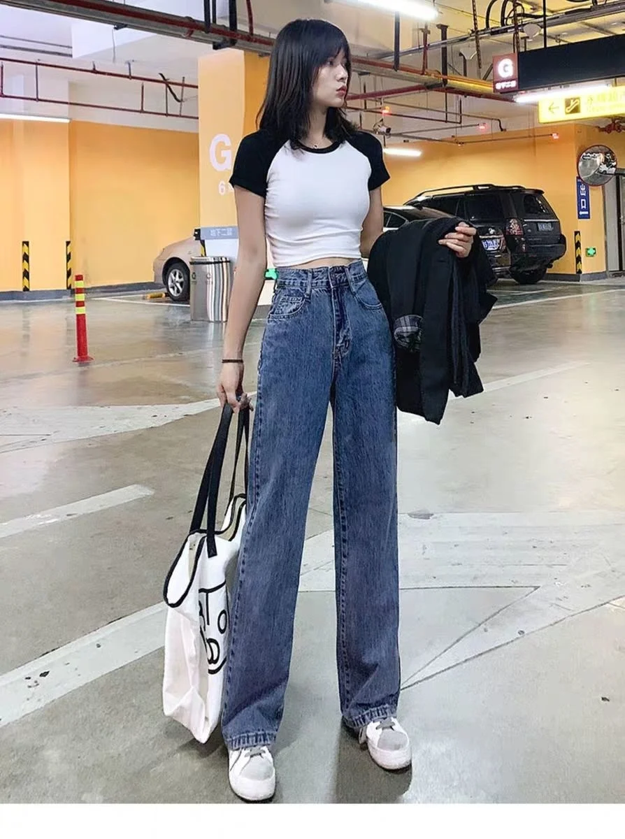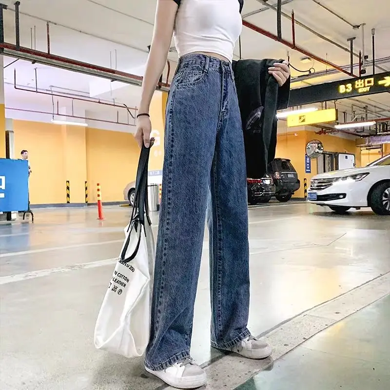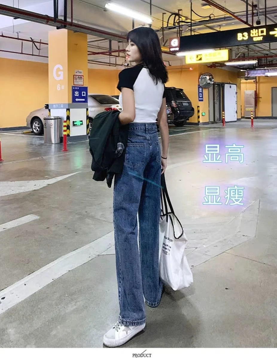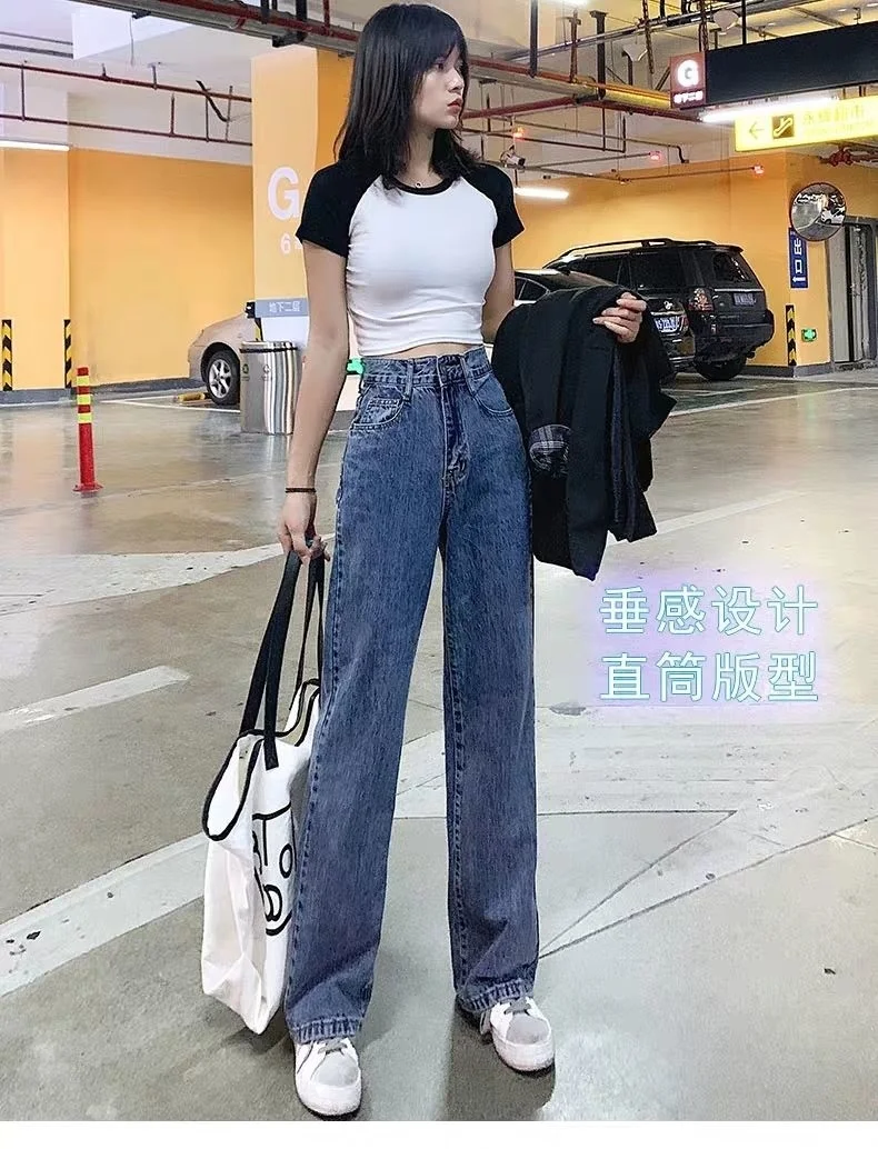 Женские джинсы, брюки с завышенной талией, свободные прямые панталоны, на осень