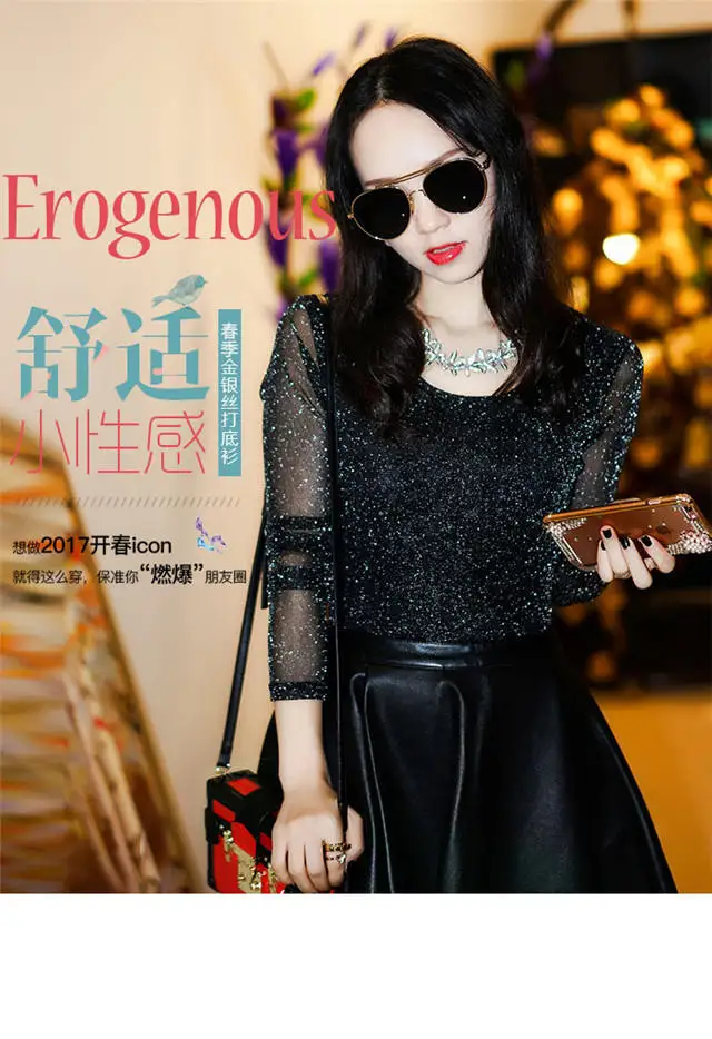 Женские футболки, сезон осень-зима, кружевная женская футболка с дл...