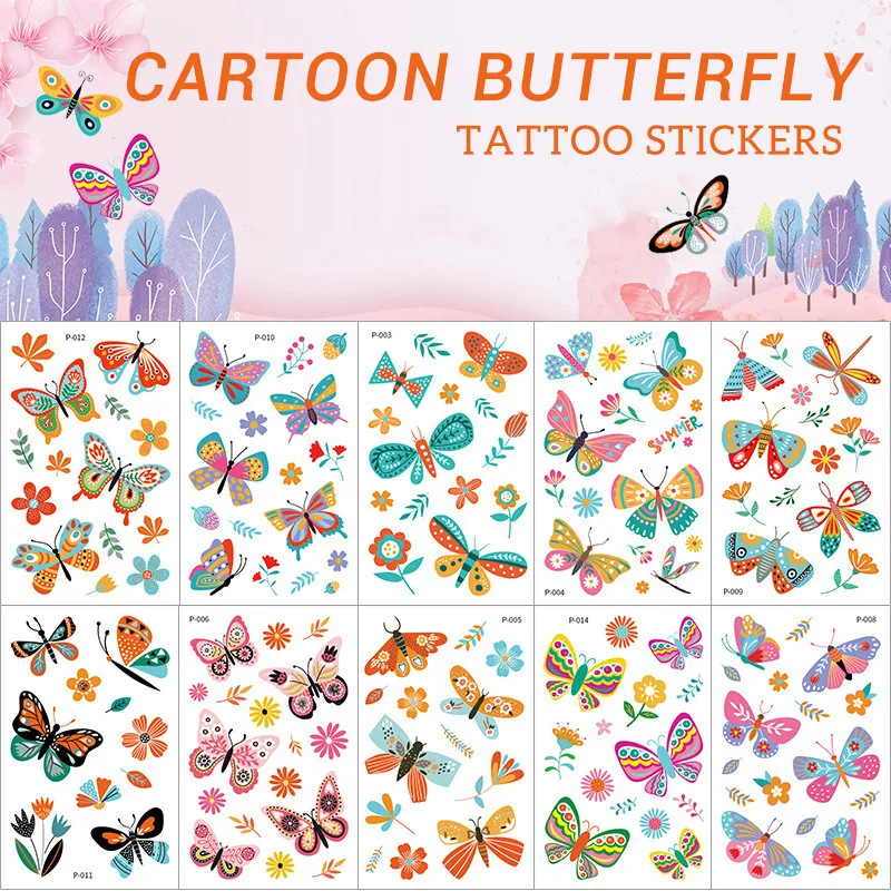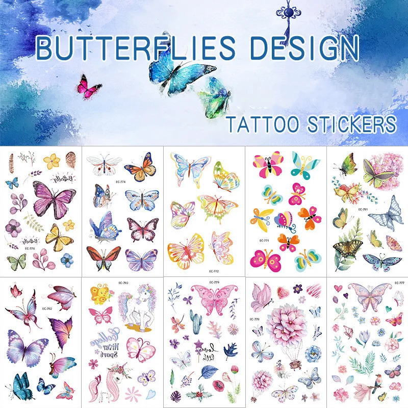 Временные татуировки-наклейки, 1 шт., водостойкие, на руку, до ключиц, наклейки для боди-арта, одноразовые татуировки-бабочки, временные наклейки для детей