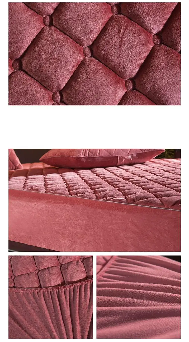 Стеганый наматрасник со стразами, бархатный, утолщенный, теплый, мягкий, плюшевый, для двуспальной кровати, стеганая простыня, наволочка не входит в комплект