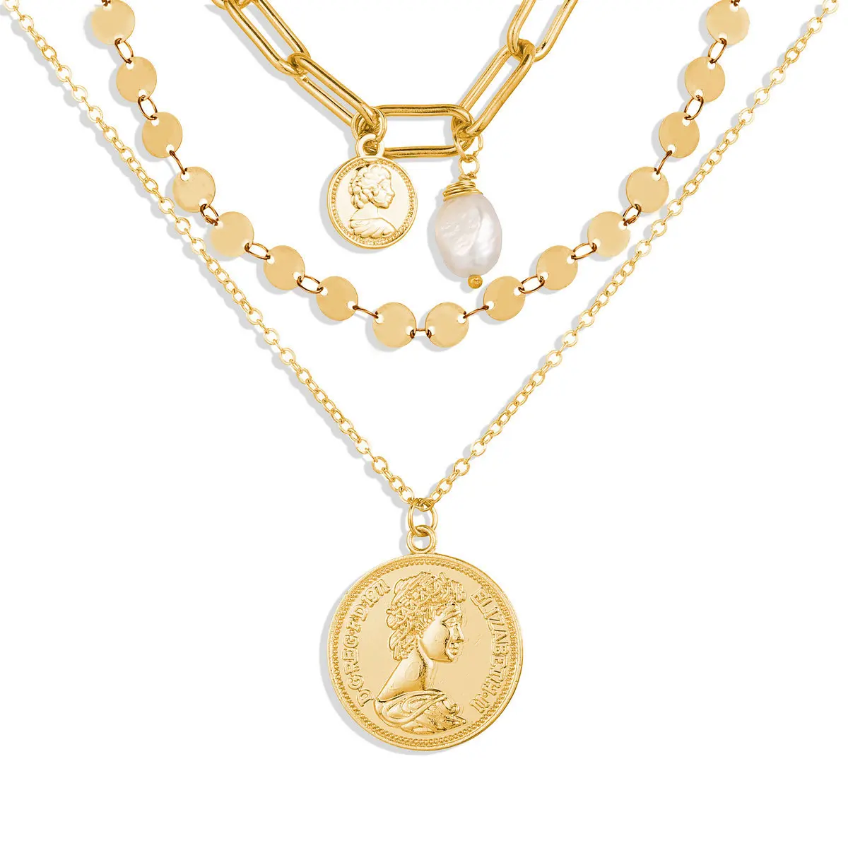 WUKALO старинных золотых Цвет монета с портретом подвес-ожерелье из...