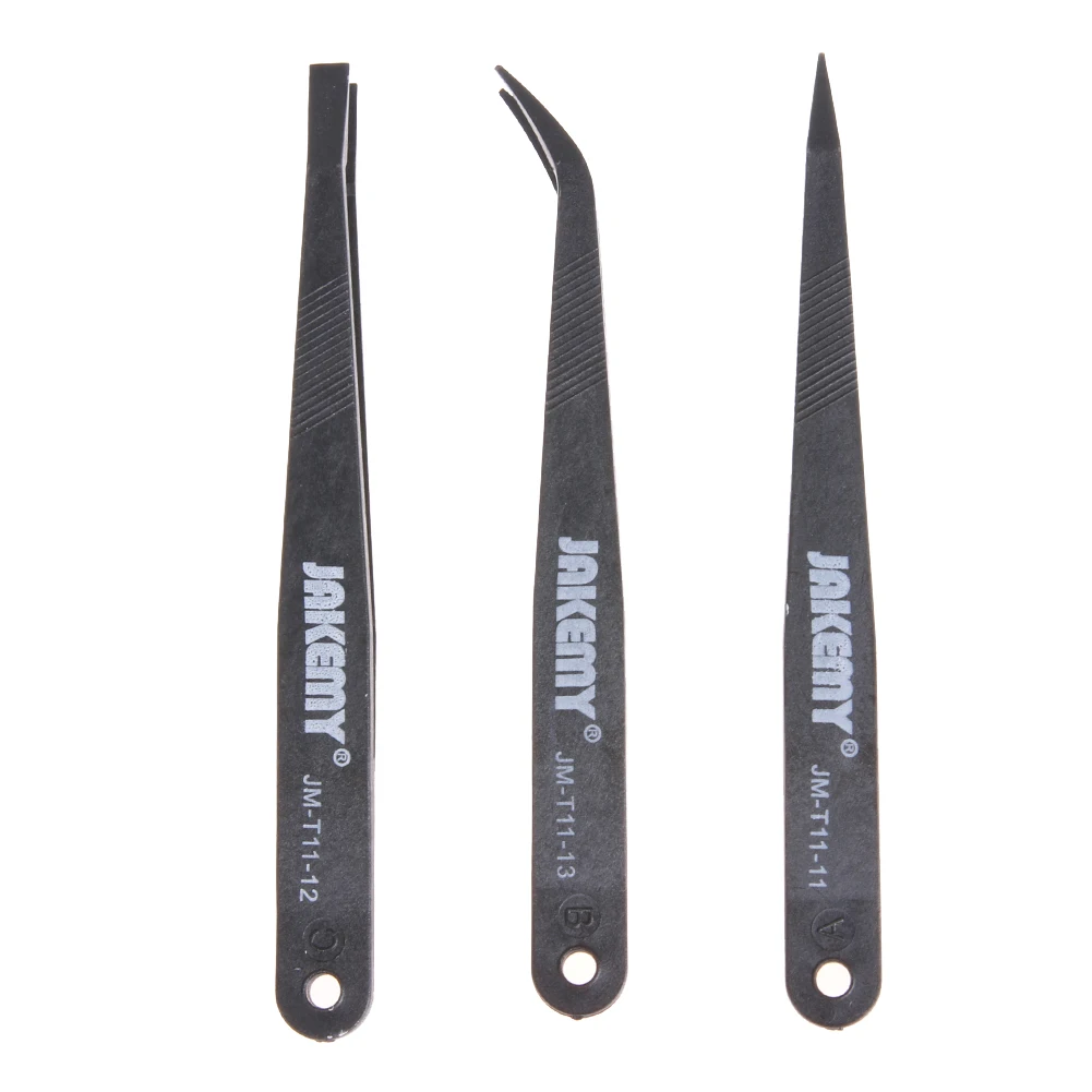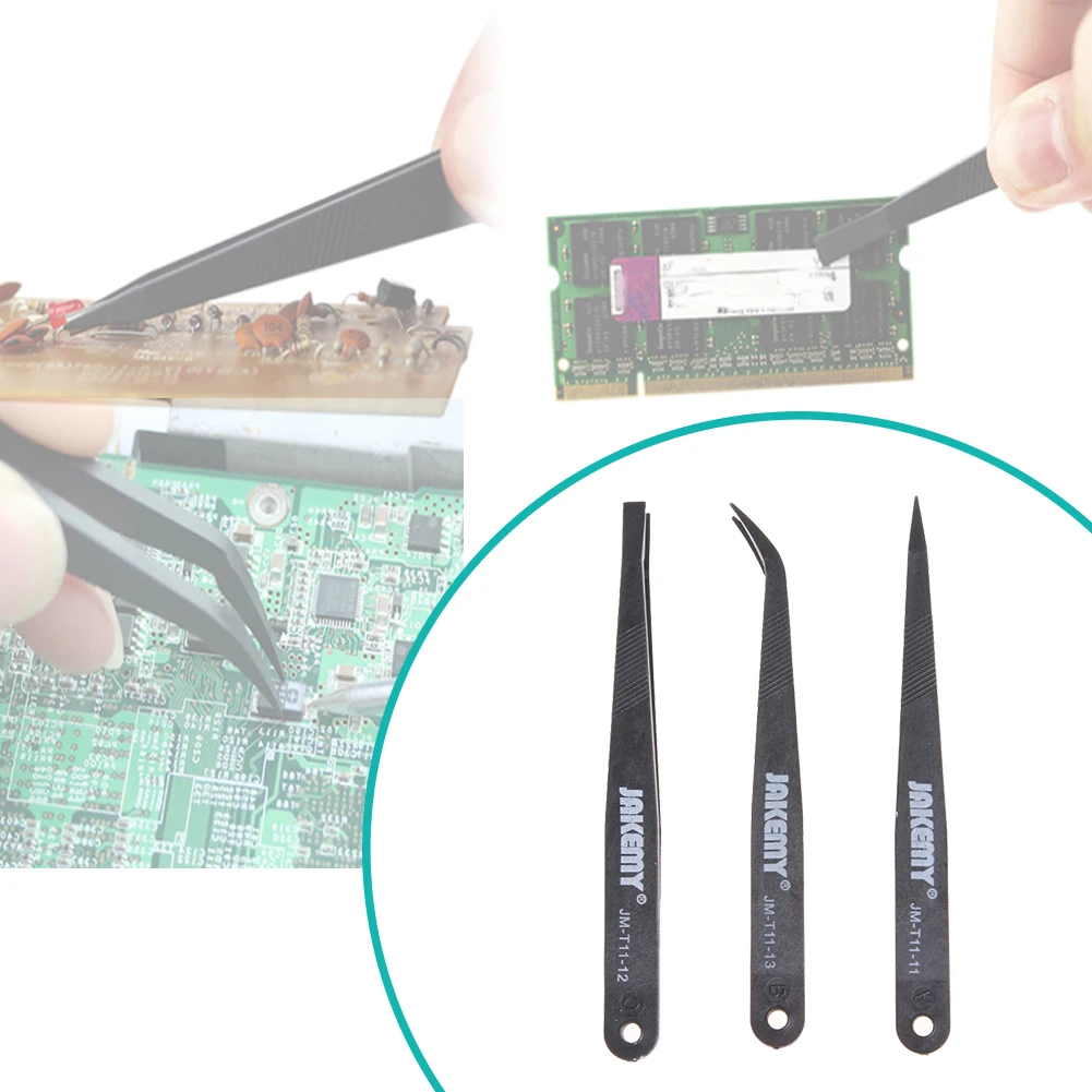 JAKEMY Анти-статический Стекло волоконные пинцеты комплект пинцеты прямые, изогнутые профессиональный и антимагнитными свойствами схема инструмент для демонтажа
