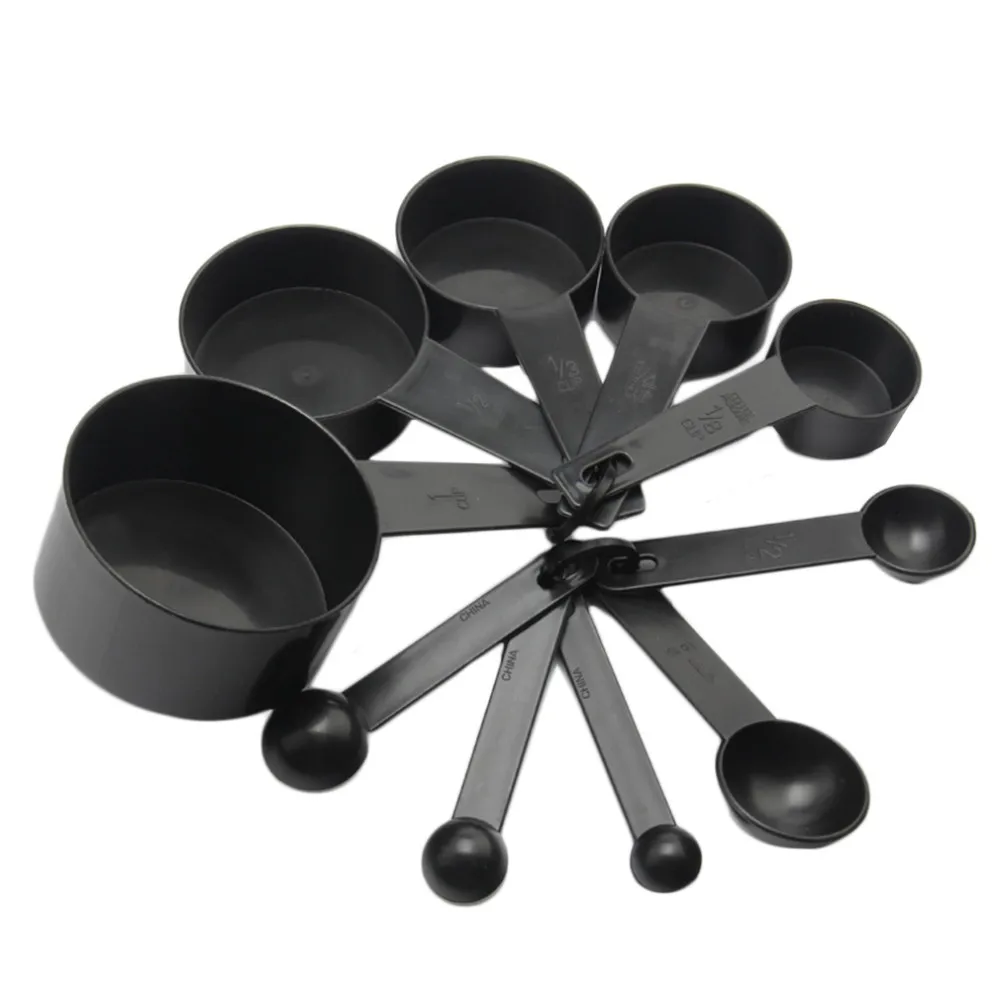 Черные Пластиковые мерные чашки 10 шт./лот мерная ложка кухонные Инструменты Измерительный набор Инструменты для выпечки кофейного чая