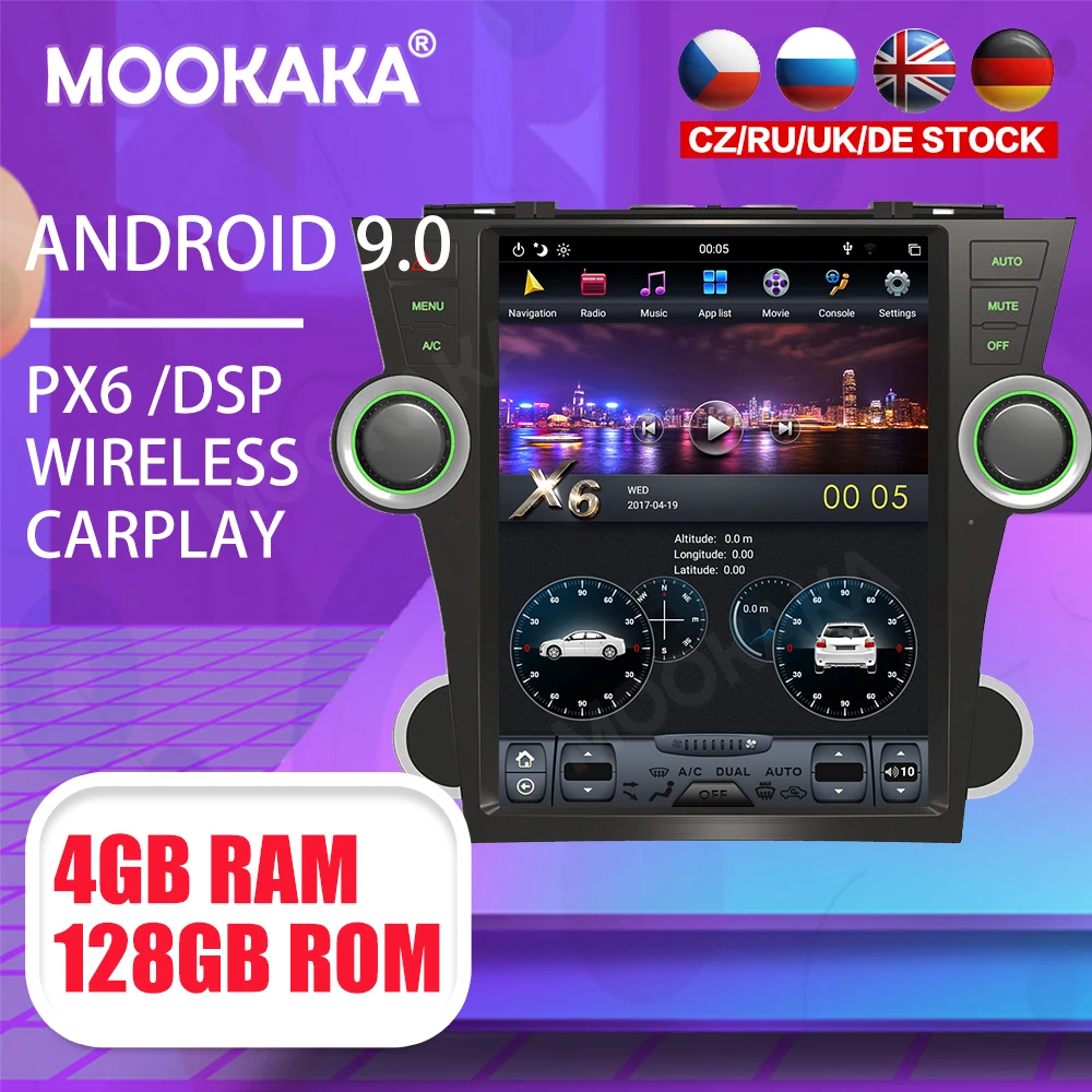 Tesla 12,1 "Android 9 PX6 4G 128 ГБ Автомобильный плеер для Toyota Highlander 2009-2013 Автомобильный GPS навигатор CarPlay головное устройство DSP стерео
