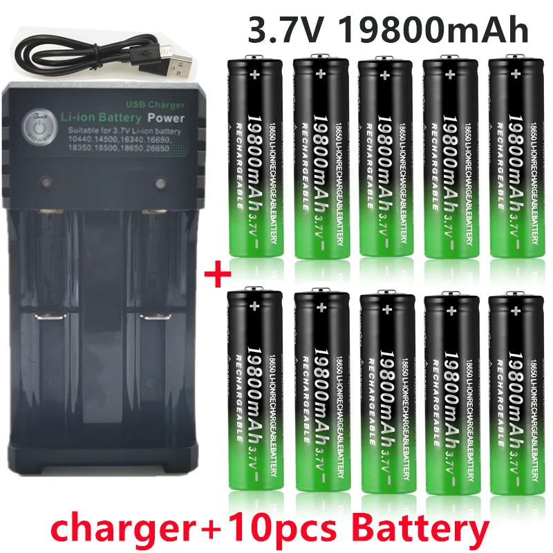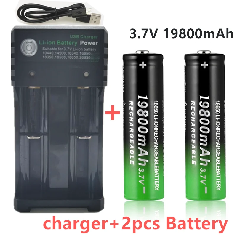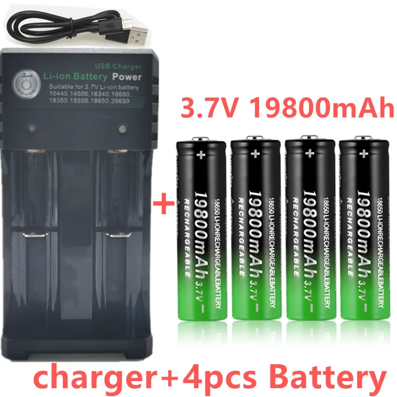 Новинка 2021, 18650, 3,7 в, 19800 мАч, перезаряжаемая батарея, аккумулятор для фонарика + 1 зарядное устройство + бесплатная доставка