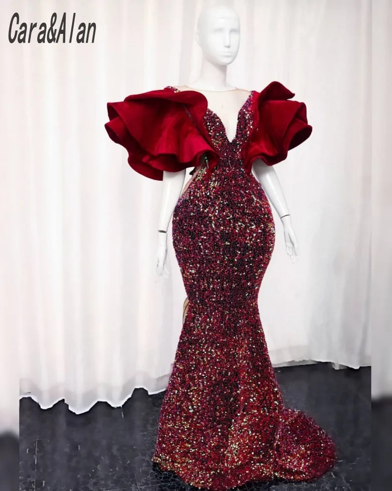 Vestidos formale красные бархатные вечерние платья женские вечерние...