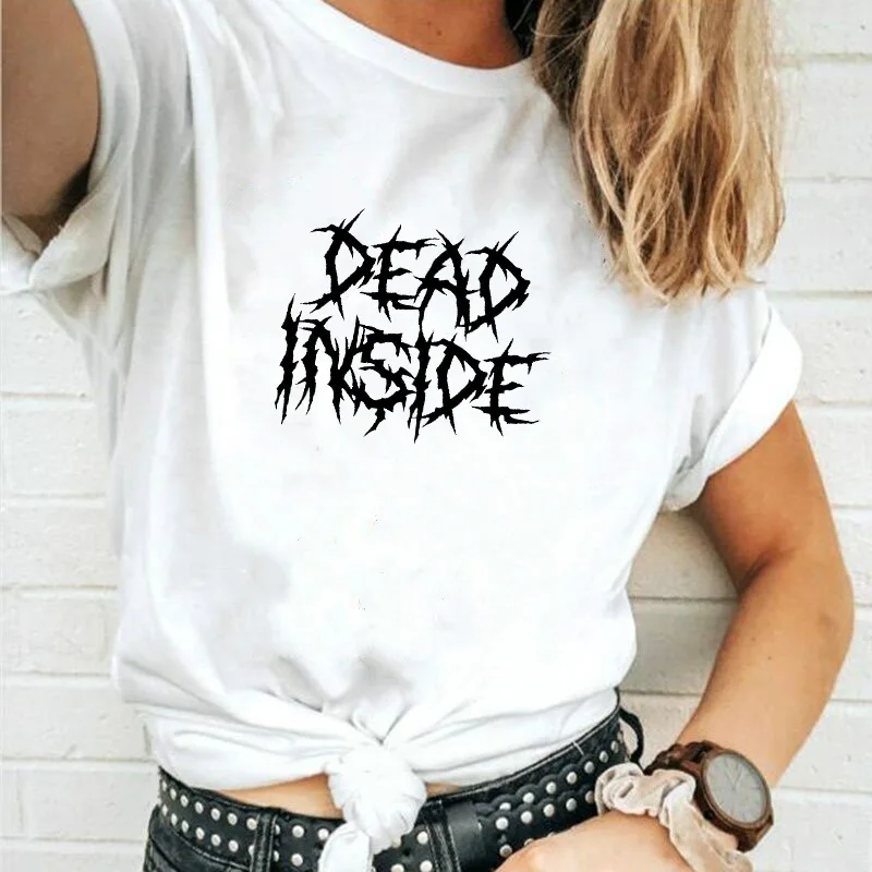 Футболка женская с надписью Dead Inside, Готическая хлопковая Футболка оверсайз с коротким рукавом и принтом