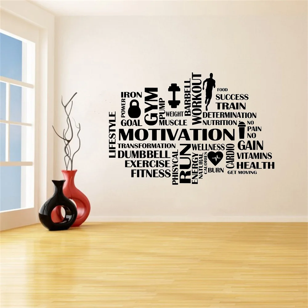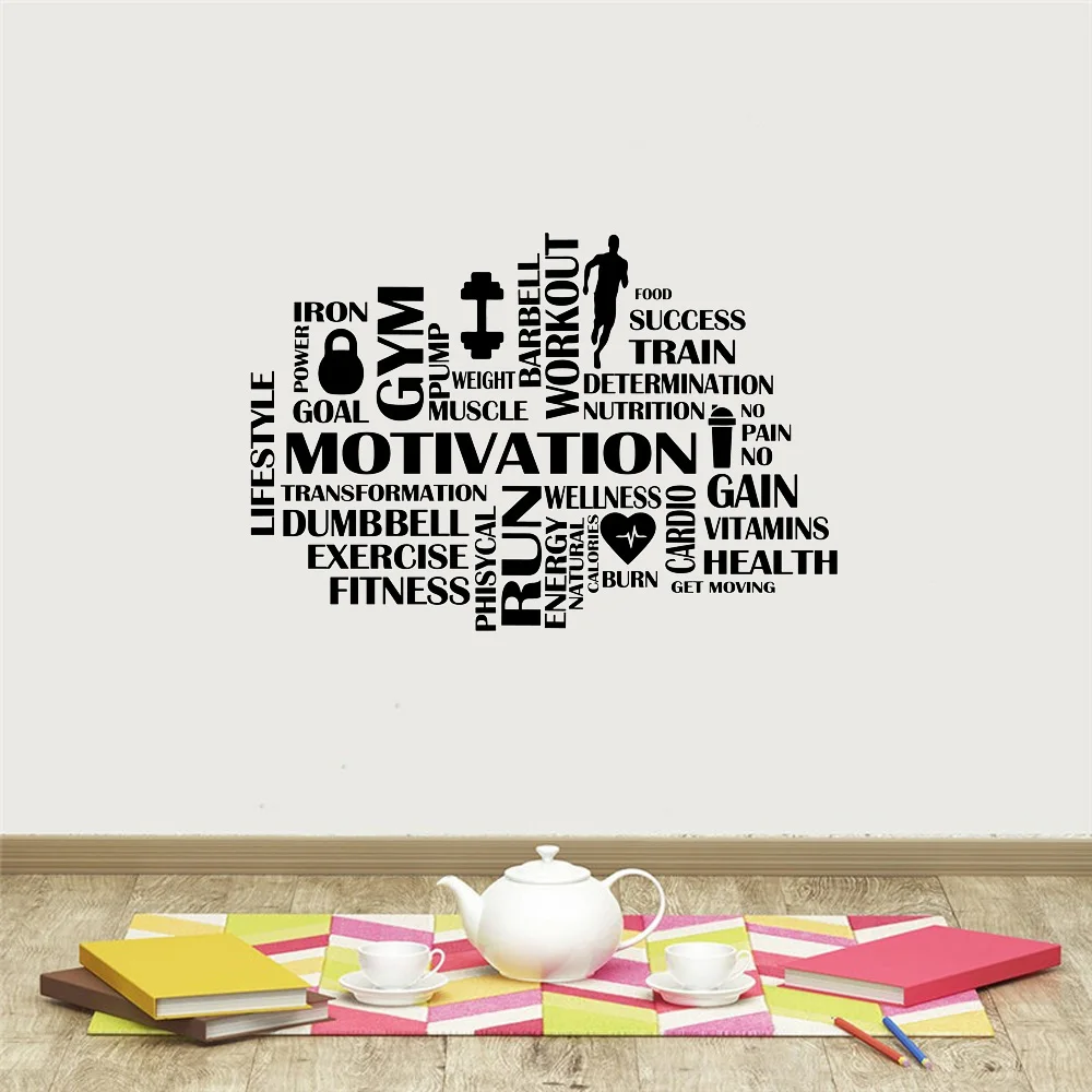 Спортзал мотивационные слова настенные наклейки для фитнеса Спорт виниловые настенные наклейки домашний декор для спортзала для работы настенные украшения