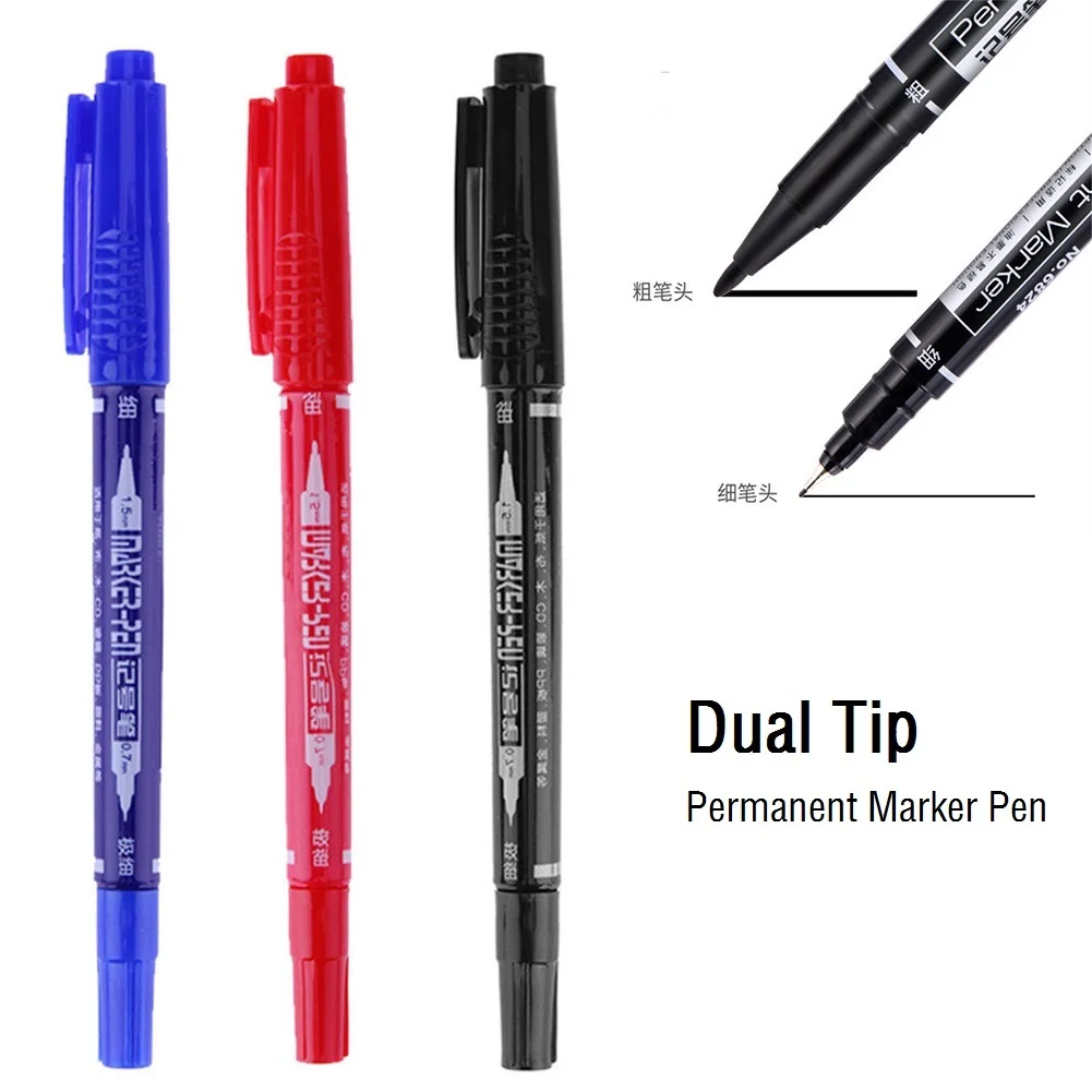 Перманентный маркер с двумя наконечниками, черныесиниекрасные черни...