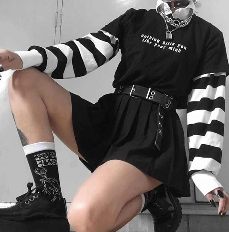Футболка женская черная с буквенным принтом, в стиле Харадзюку