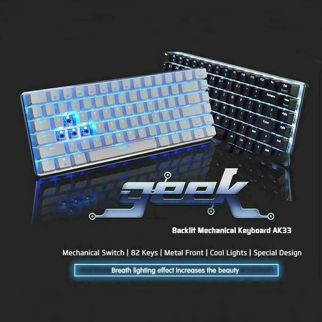 Механическая клавиатура AK33, игровая проводная USB клавиатура с подсветкой 82 клавиши, синий и черный цвета