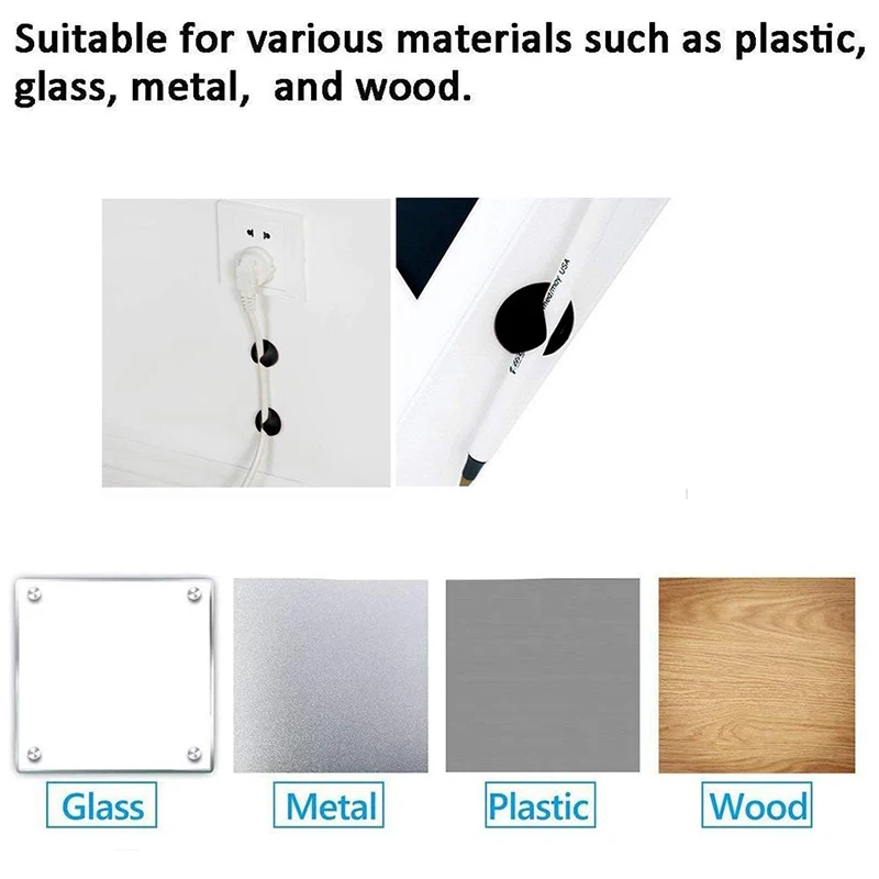 Кабельные Зажимы подходят где? --- Легко крепится на стол, стену, стол и другие плоские поверхности. Подходит для любого вида беспорядка, вызванного разными типами шнуров. Идеально подходит для наушников, usb-кабелей, шнуров питания, проводов 3C продукта, ТВ-кабеля или других аксессуаров, которые вам нужны вручную.