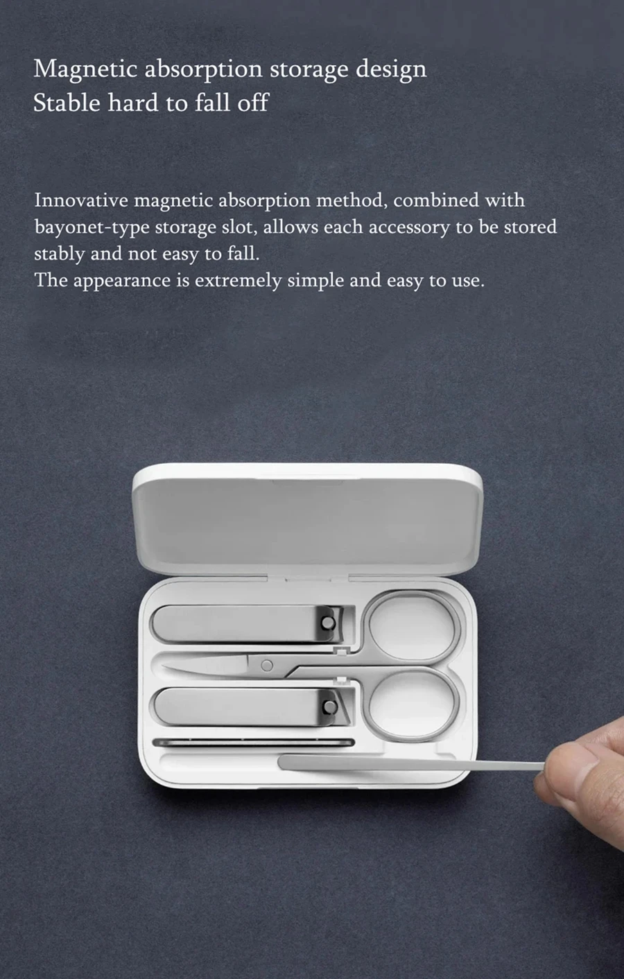 Бренд: XIAOMI MijiaМодель: MJZJD002QWМатериал: нержавеющая сталь 420430 + АБС-пластикЦвет: серебристыйКоличество: 5 шт.Угловой кусачки для ногтей размер 60, 9x11x ммЩипцы для ногтей с плоским ртом, размер x 11x ммКосметические ножницы размером 91,9x46,5x3,4 ммРазмер пилки для ногтей 59,1x11,6x1,2 ммРазмер наушников 89,7x5x2,9 ммКоробка для хранения размером 65x104x17,3 ммИсполнительный стандарт QB / T 1815-2002 DB44 / T 1836-2016
