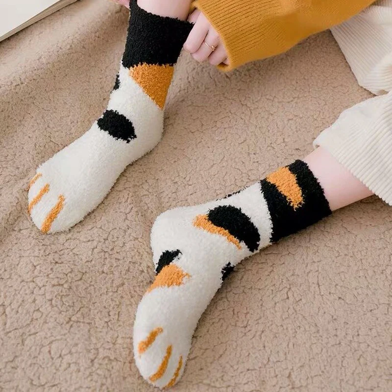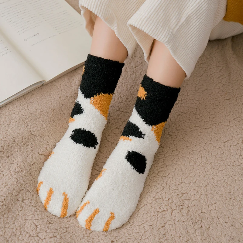 Зимние толстые теплые носки, носки в полоску с забавным принтом кошачьей лапки, милые хлопковые носки, Модные Дизайнерские повседневные носки для женщин