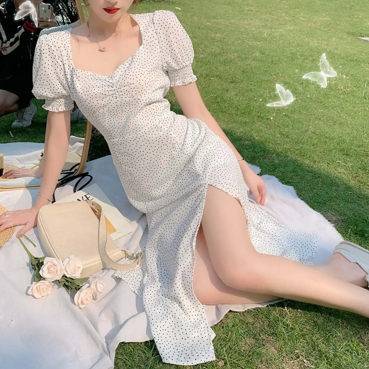 Женское шифоновое платье, винтажное элегантное офисное платье в стиле ретро, с пышными рукавами, Y2K, для лета