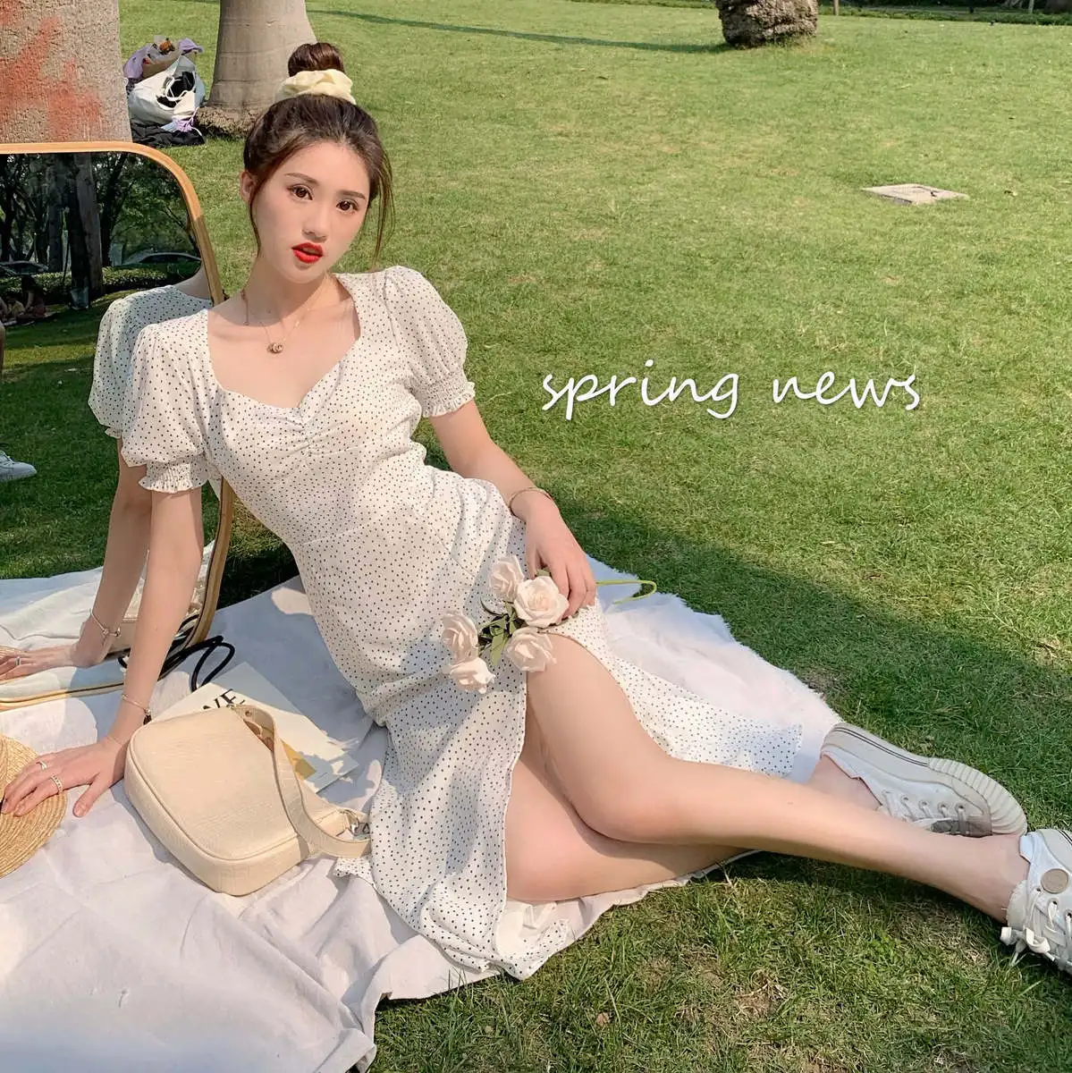 Женское шифоновое платье в горошек, повседневное элегантное прямое ...