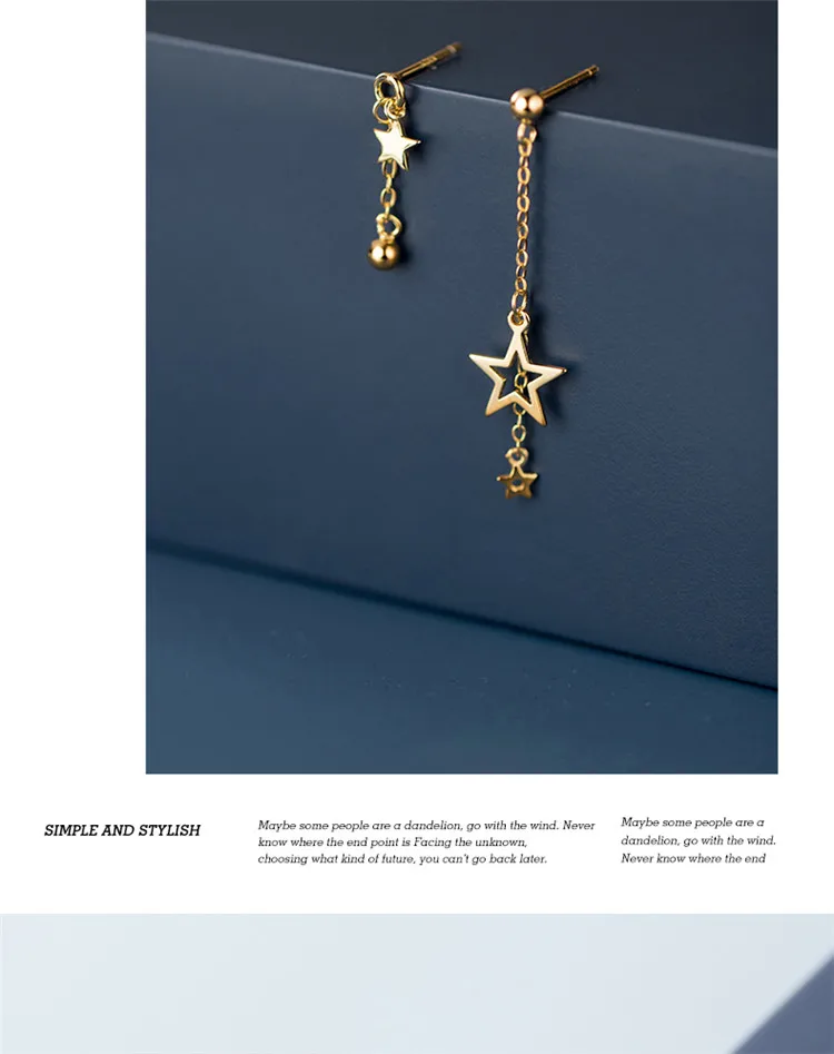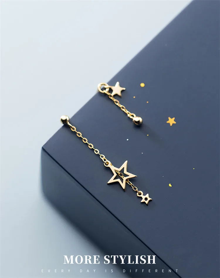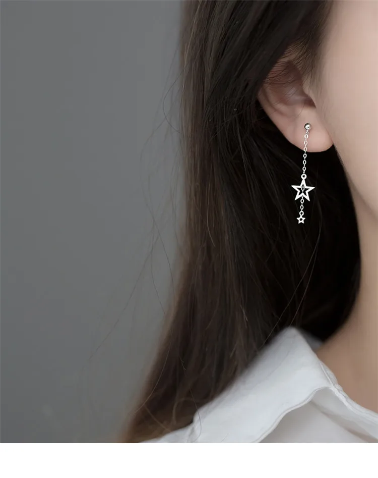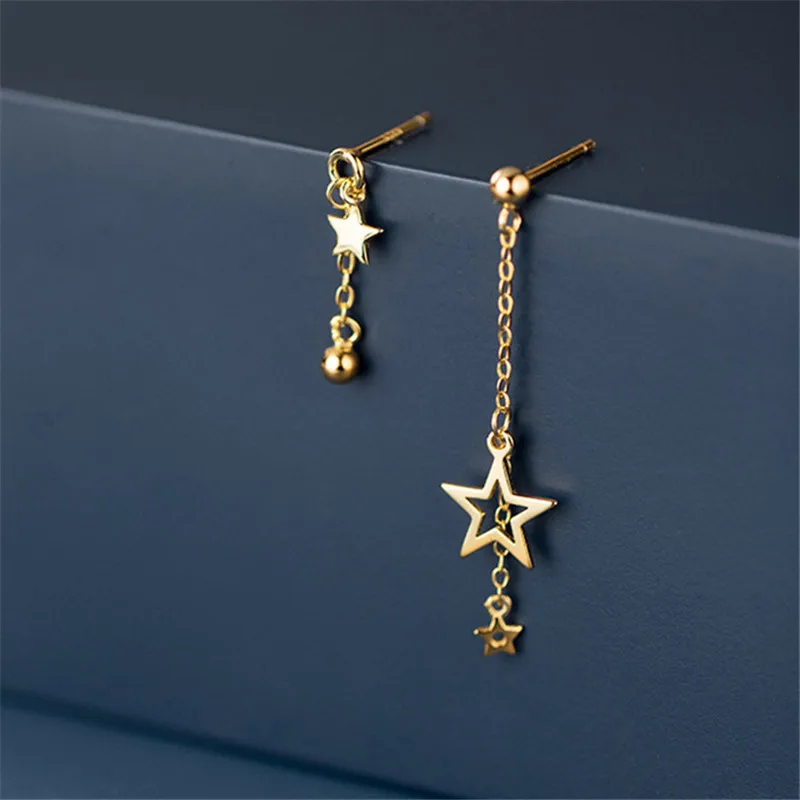 100% 925 стерлингового серебра асимметричные серьги в форме полой звезды для женщин серьги-подвески ювелирные украшения леди подарок для девочек 2021 дизайн