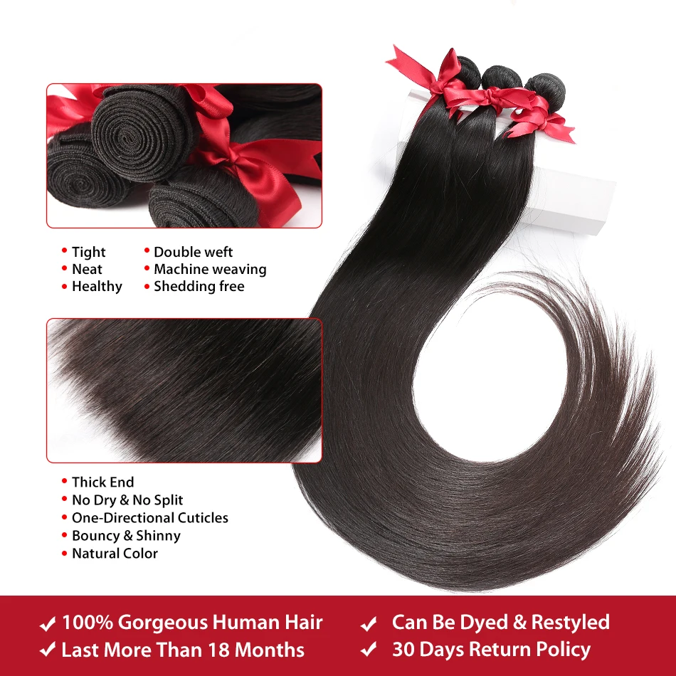 Пряди волос Wigirl для чернокожих женщин, прямые, 28, 30, 32, 40 дюймов, 3, 4, перуанские, плетеные, с застежкой на шнуровке 4X4