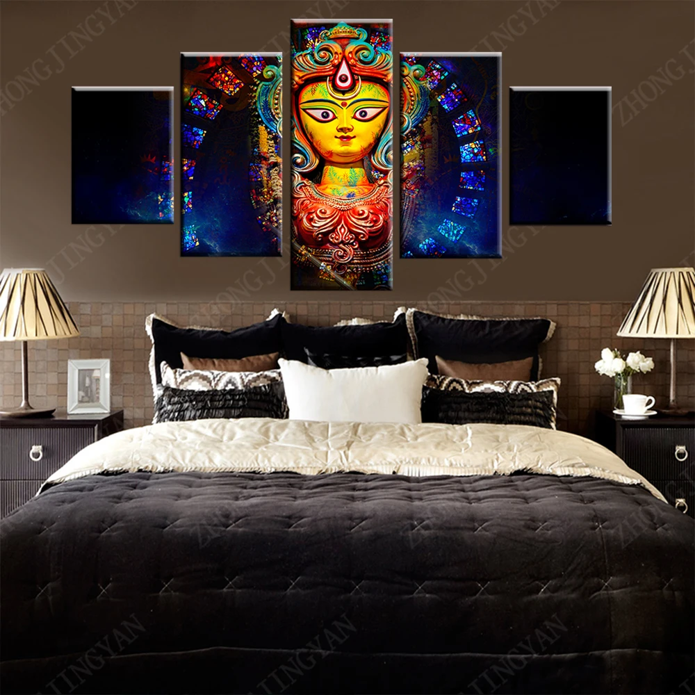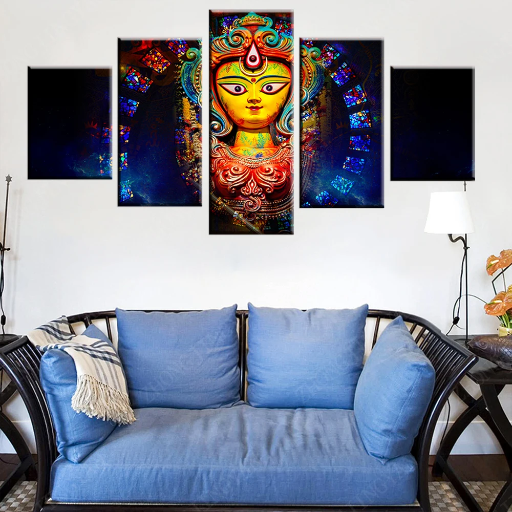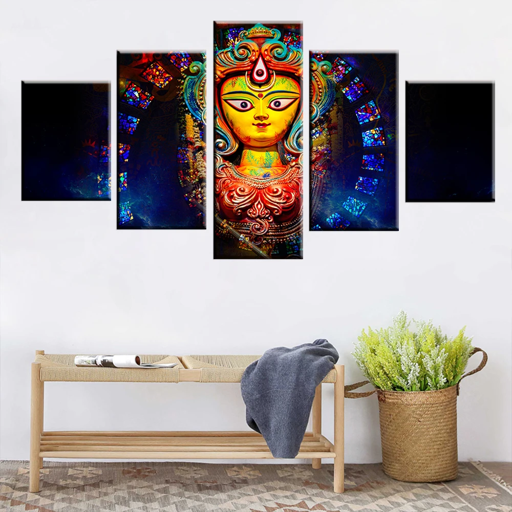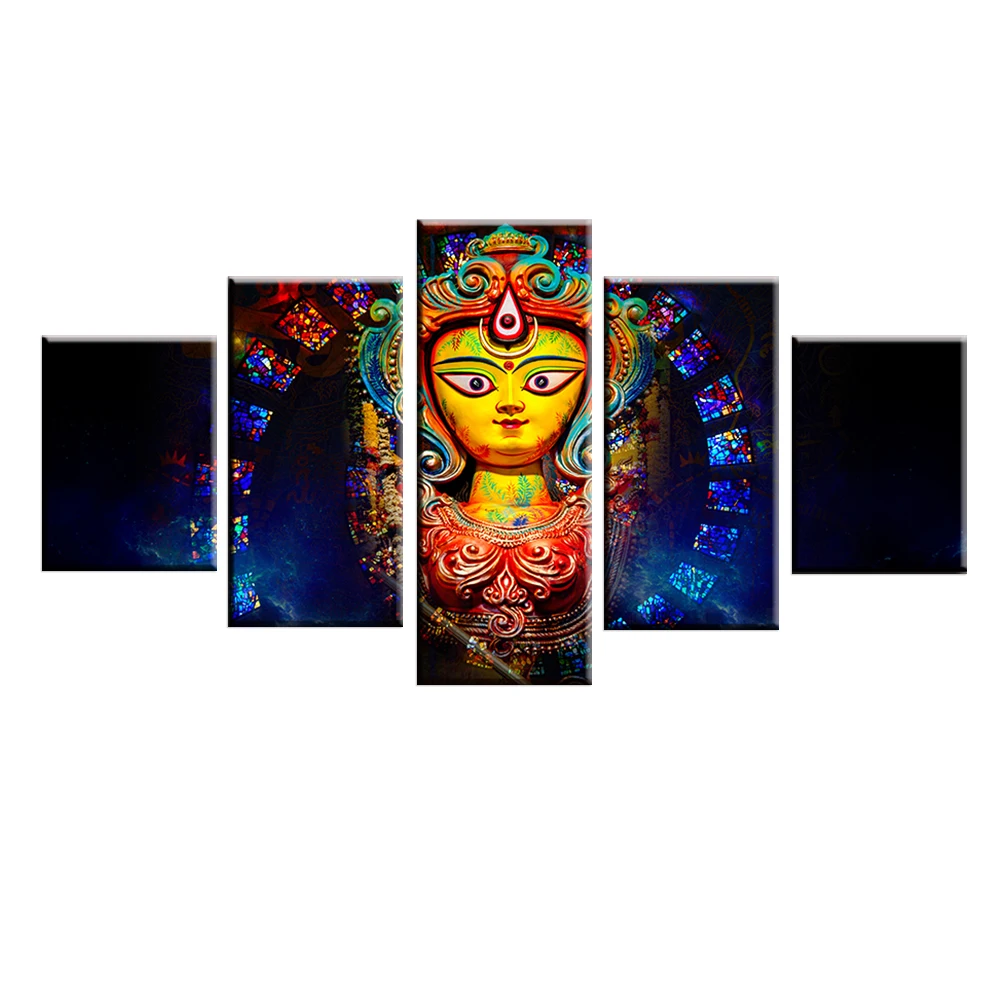 Холст, настенные картины, декор для гостиной, 5 шт., индийская мифология, богиня Дурга, картины для гостиной, HD печатные плакаты, рамка