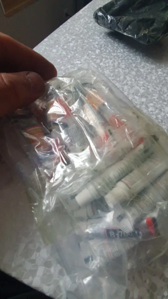 товар пришел быстро и упакованный в воздушный пакет.спасибо продавцу с которым не было необходимости общаться. соответствует описанию. по количеству согласно заказу. при вскрытии пакета чувствовался резкий химический запах из-за перфорации защитной пленки одного из тюбиков из которого вытекло наружу две капли клея. клеем ещё не пользовалась но в интернете читала хорошие отзывы именно об этом клее.