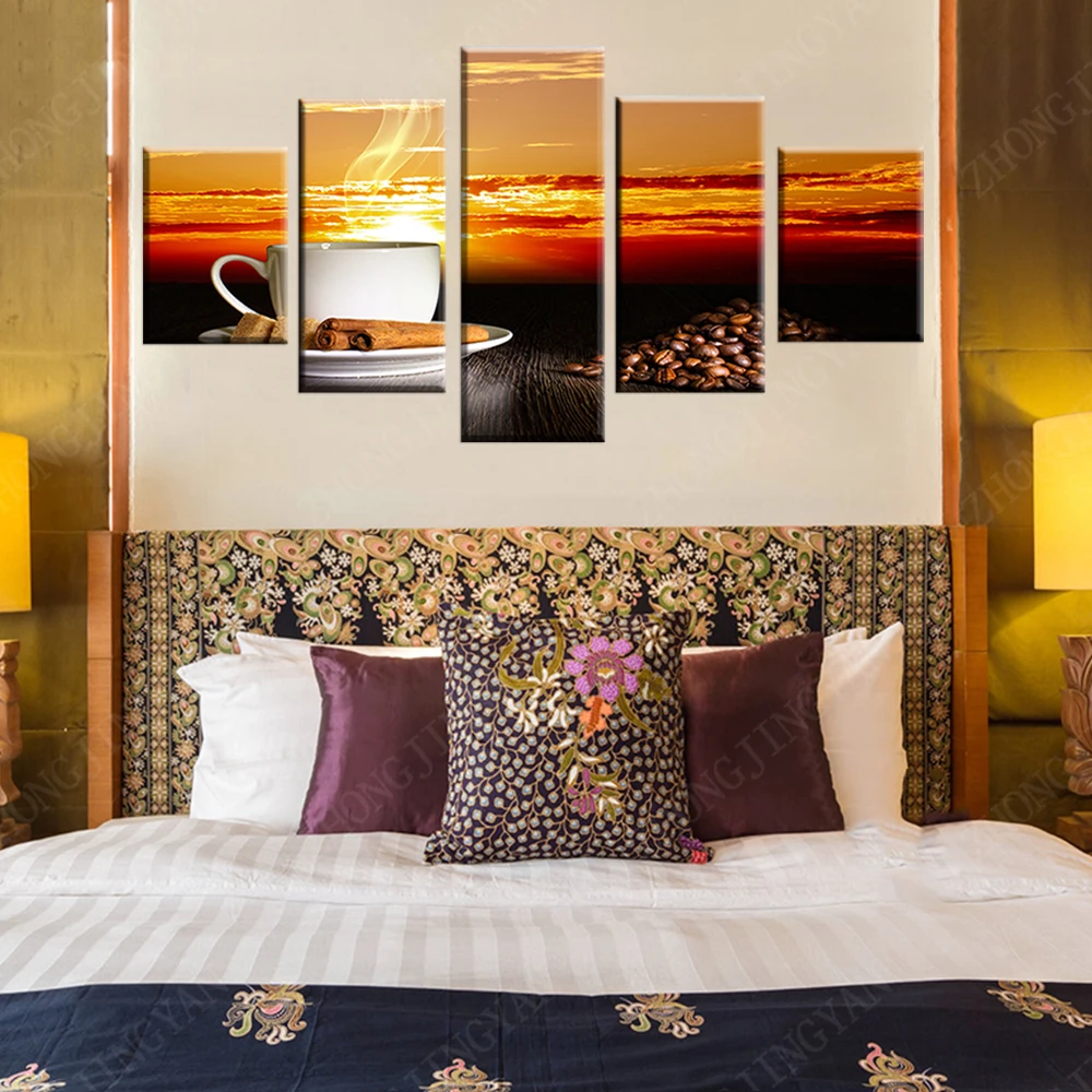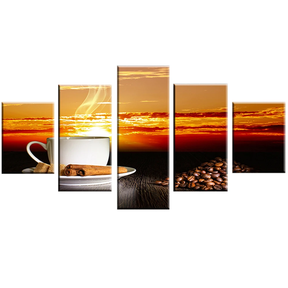 Холст фото рамки печать плакатов 5 шт. закат Кофе пейзажная живопись модульная Кухня Wall Art Ресторан домашний декор