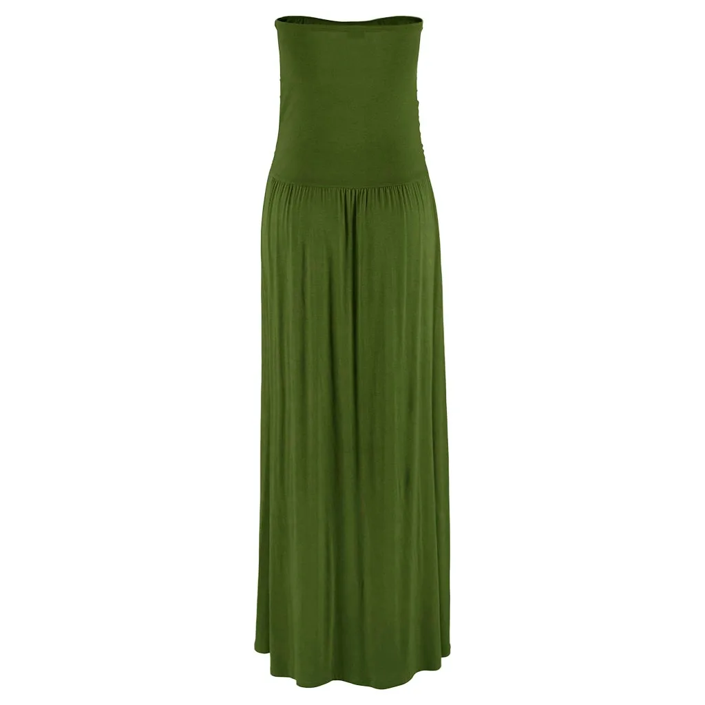 Женское длинное платье без бретелек, пикантное летнее однотонное Макси-платье с открытыми плечами, повседневный пляжный праздничный сарафан с карманами, rob# T2P