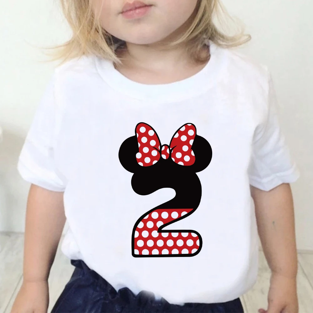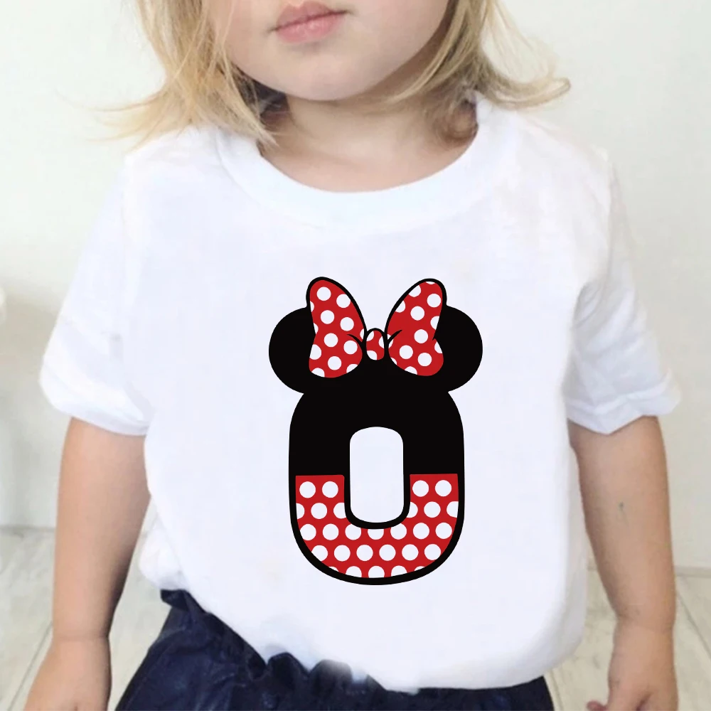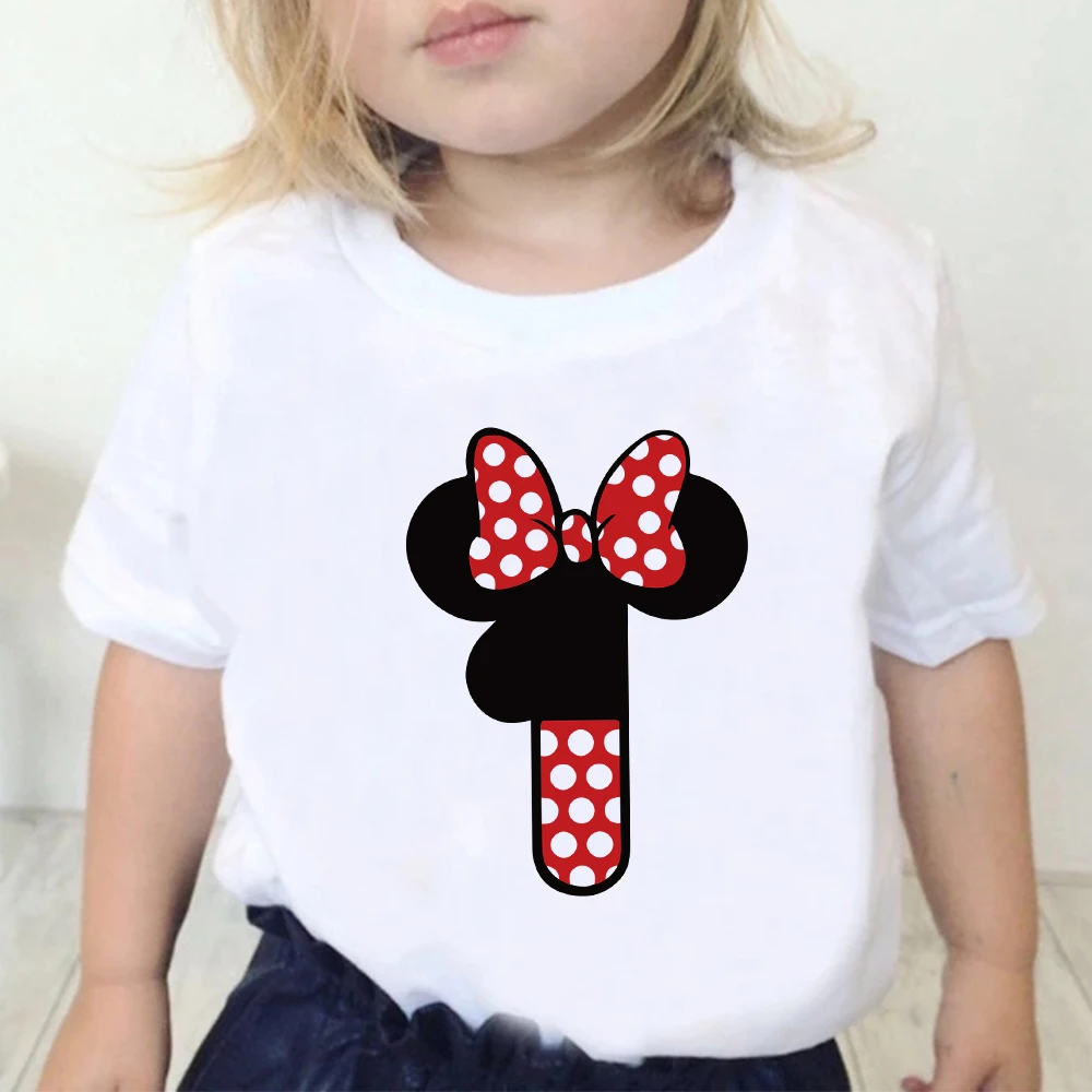 1 2 3 От 5 до 8 лет с изображением Минни Маус для девочек, футболка для маленьких мальчиков, футболки с короткими рукавами с надписью Детский свитшот с принтом с героями мультфильмов, одежда для детей на день рождения, вечерние