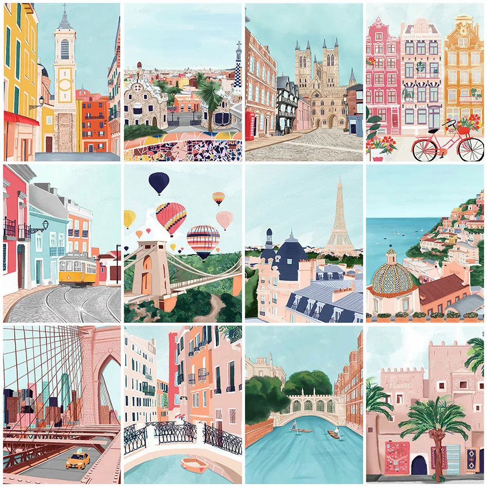 Алмазная мозаика, полный макет:Улица с алмазной вышивкой