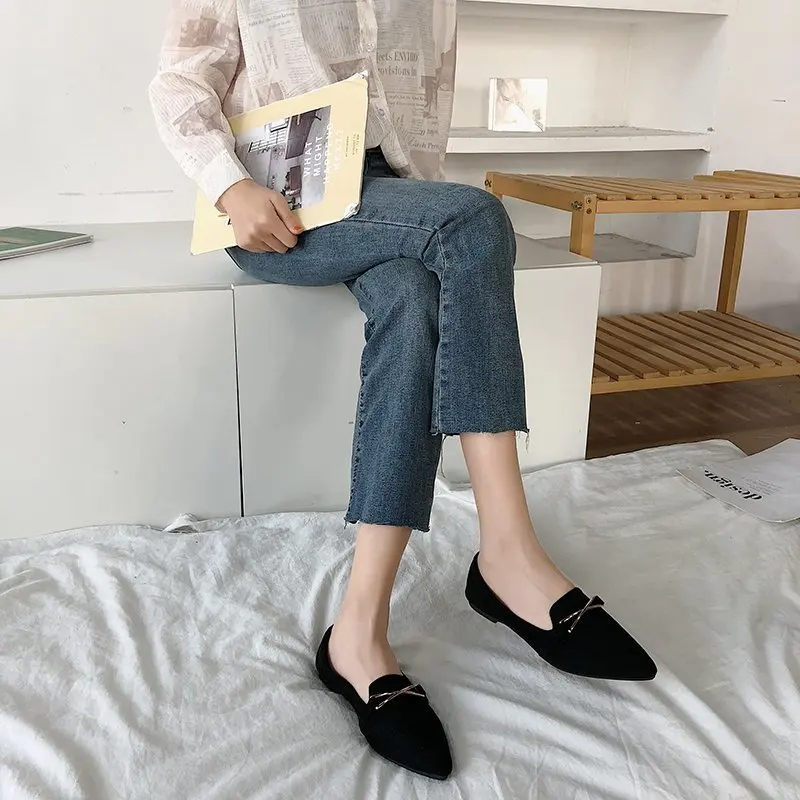 Модная женская обувь на плоской подошве с острым носком; Женская об...