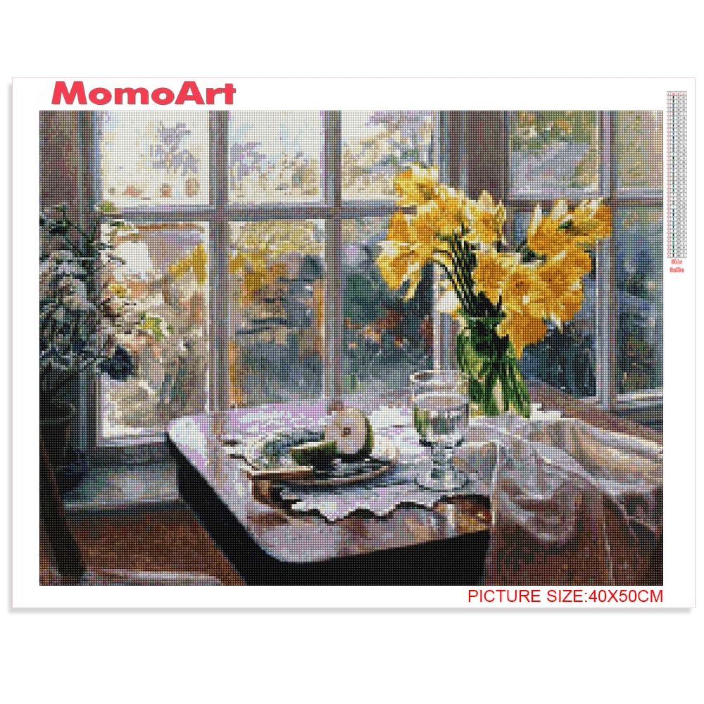 MomoArt Алмазная вышивка цветок картина стразы Алмазная мозаика окно пейзаж подарок ручной работы декор для дома