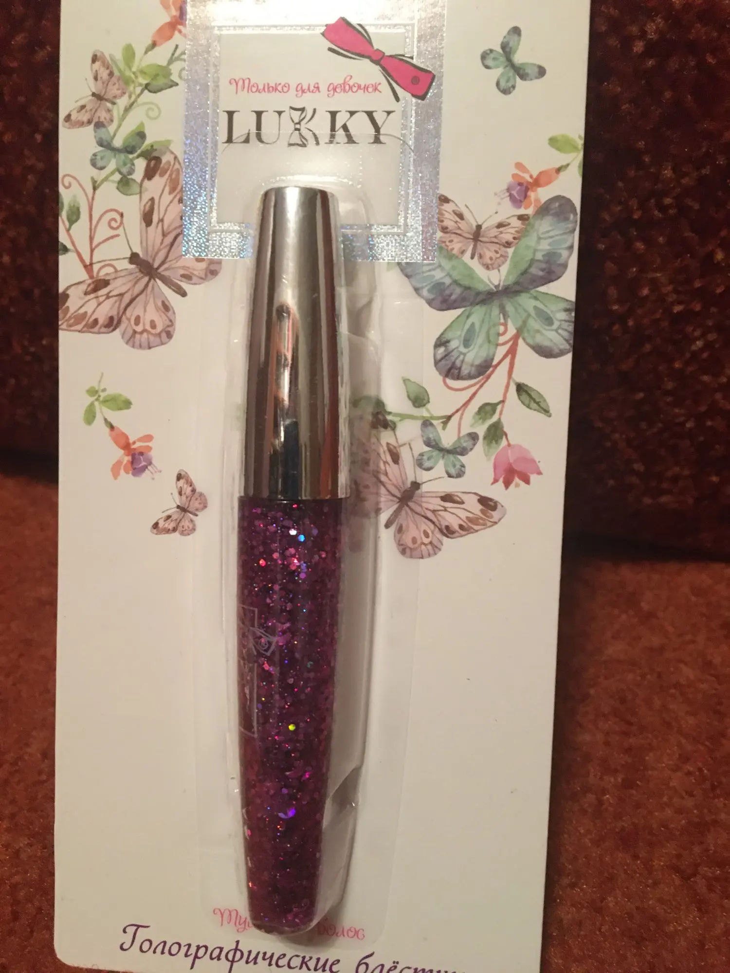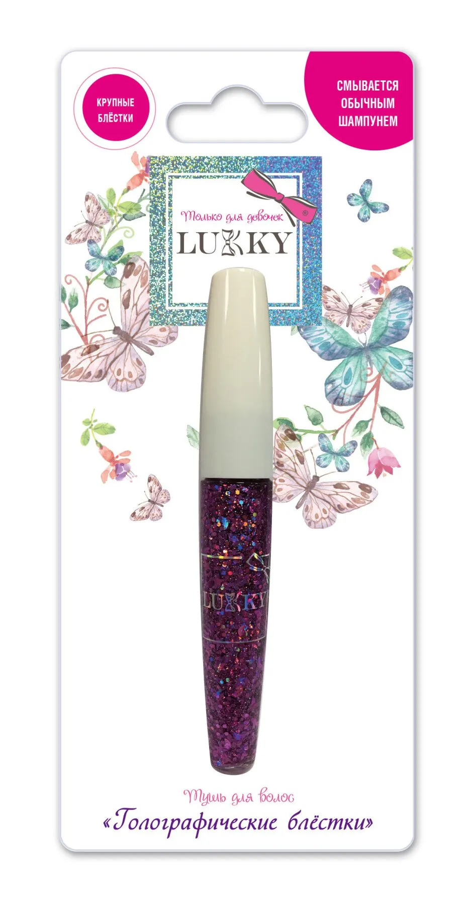 Фиолетовая голографическая тушь для волос LUKKY с крупными блёстками разной формы ЦЕНА ЗА 1 ШТ