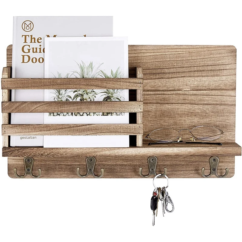 Настенный держатель для электронной почты, деревянный органайзер для сортировки почты, с 4 двойными крючками для ключей, украшение для дома, для входа или грязевой комнаты